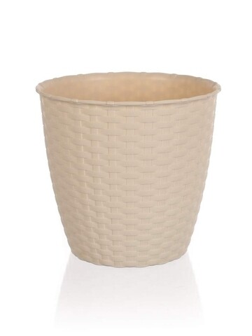 Virágcserép, Krémes rattan, Glass-Plus, 19x17,5 cm, műanyag, krém