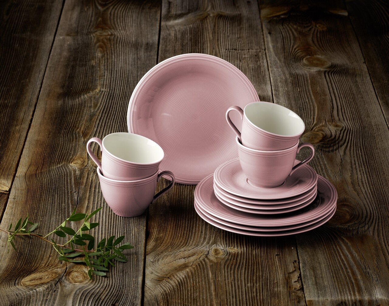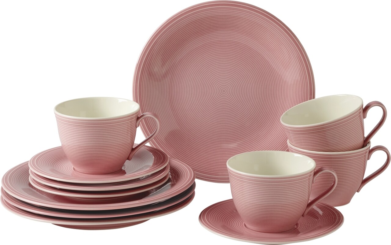 12 darabos kávéskészlet, mint a Villeroy & Boch, Color Loop Rose, prémium porcelán, rózsaszín
