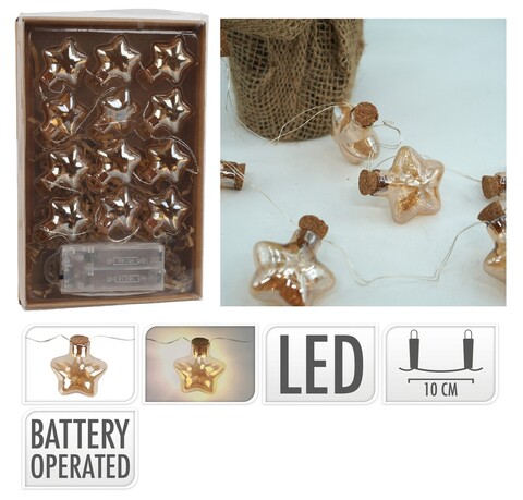 12 LED-el Star Fényfüzér, 120 cm, üveg, borostyán