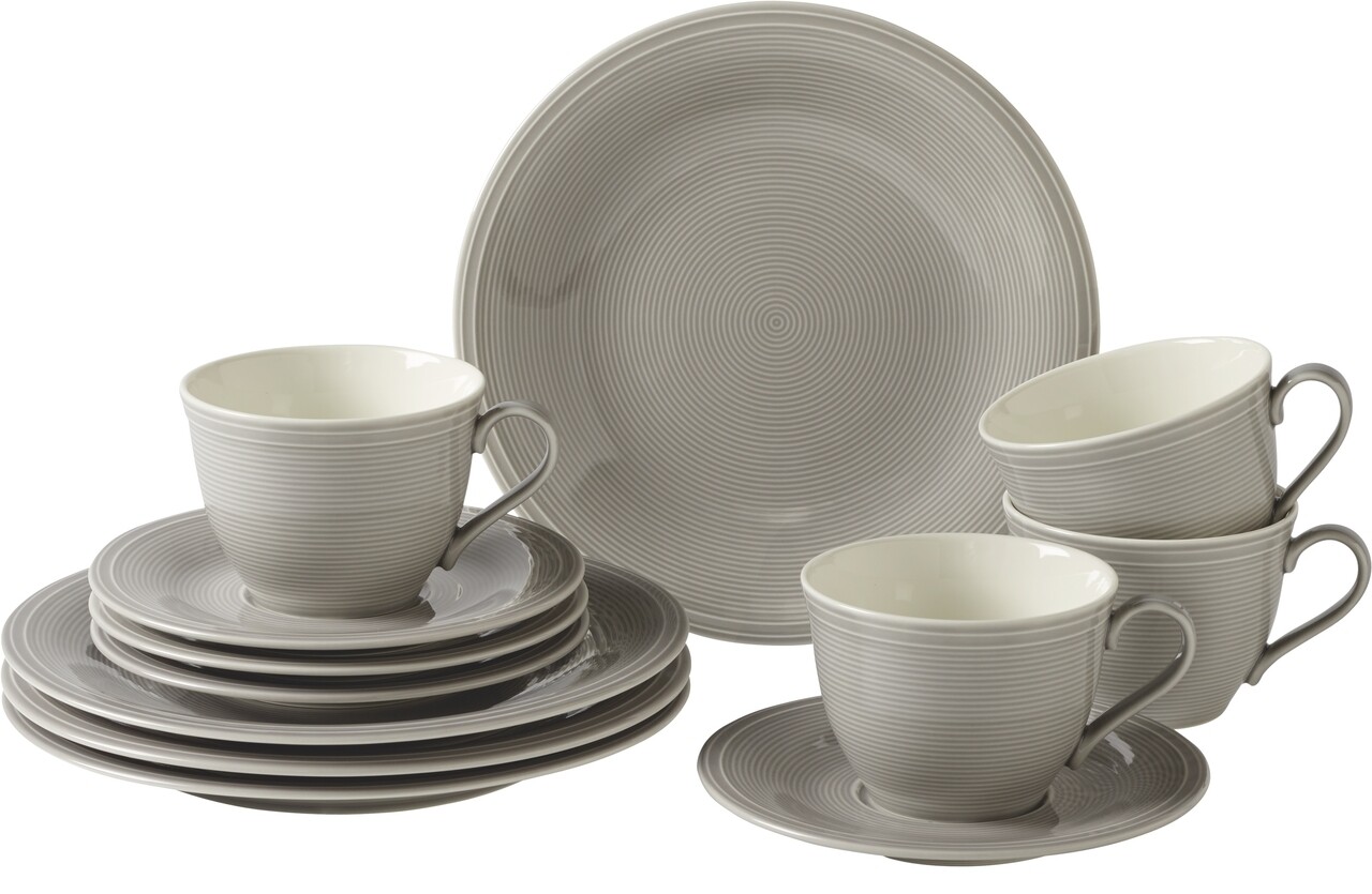 12 részes kávéskészlet, mint a Villeroy & Boch, Color Loop Stone, prémium porcelán, szürke