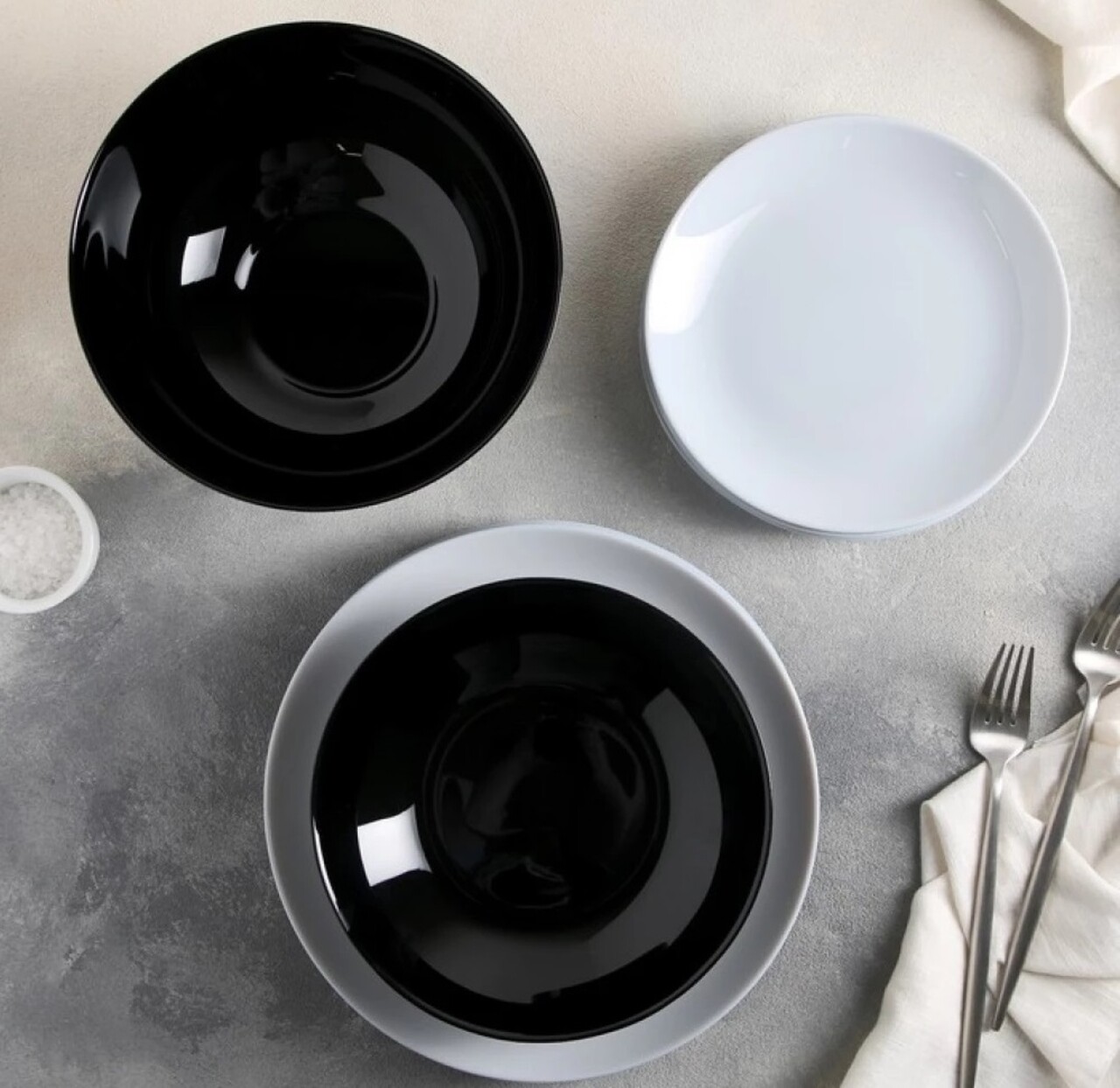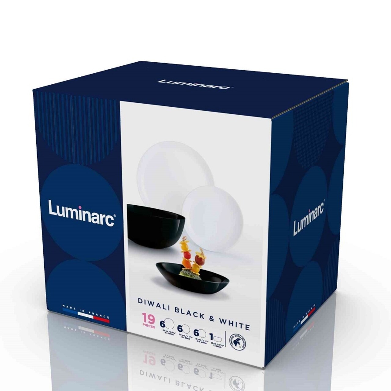 19 részes étkészlet, Luminarc, Diwali fekete-fehér, opál, fehér / fekete