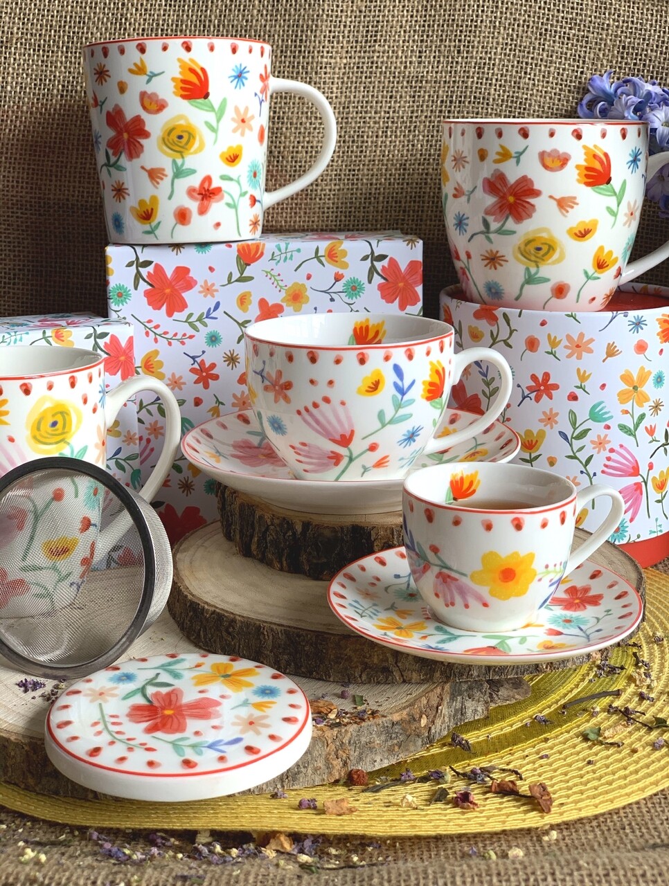2 db csésze készlet csészealjjal, DUO, Pasztell, 90 ml, porcelán, tarka