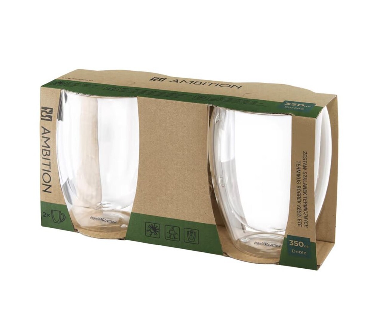 2 db Doble hőálló csészéből készlet, Ambition, 350 ml, edzett üveg, átlátszó