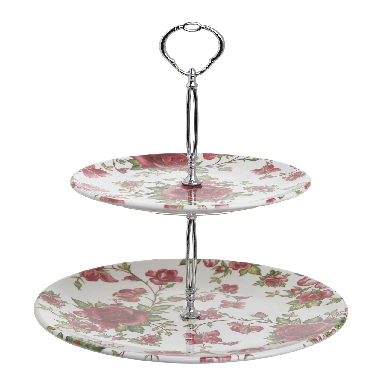2 szintes tányér virágos, InArt, Ø26 cm, kerámia, sokszínű