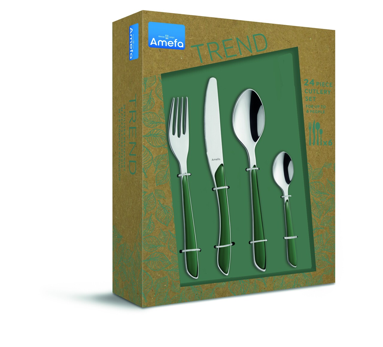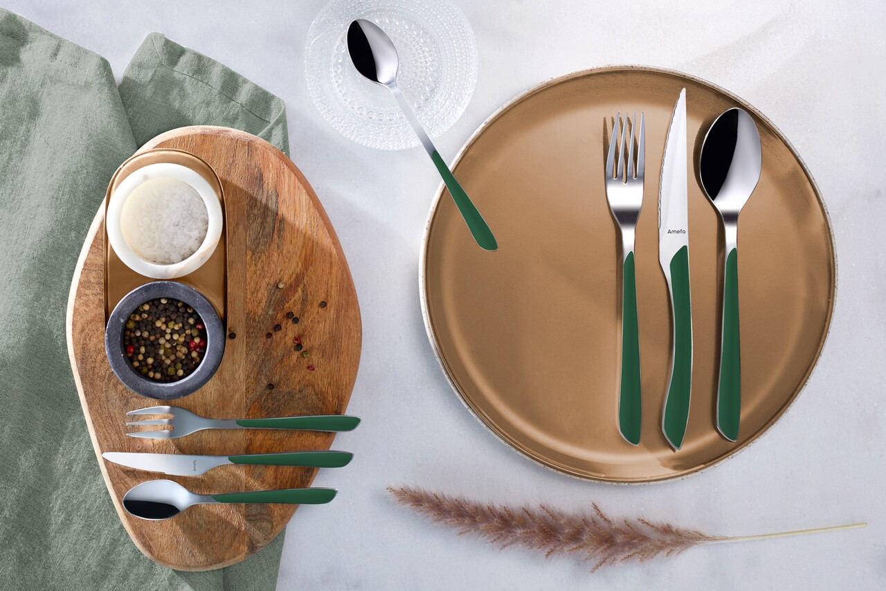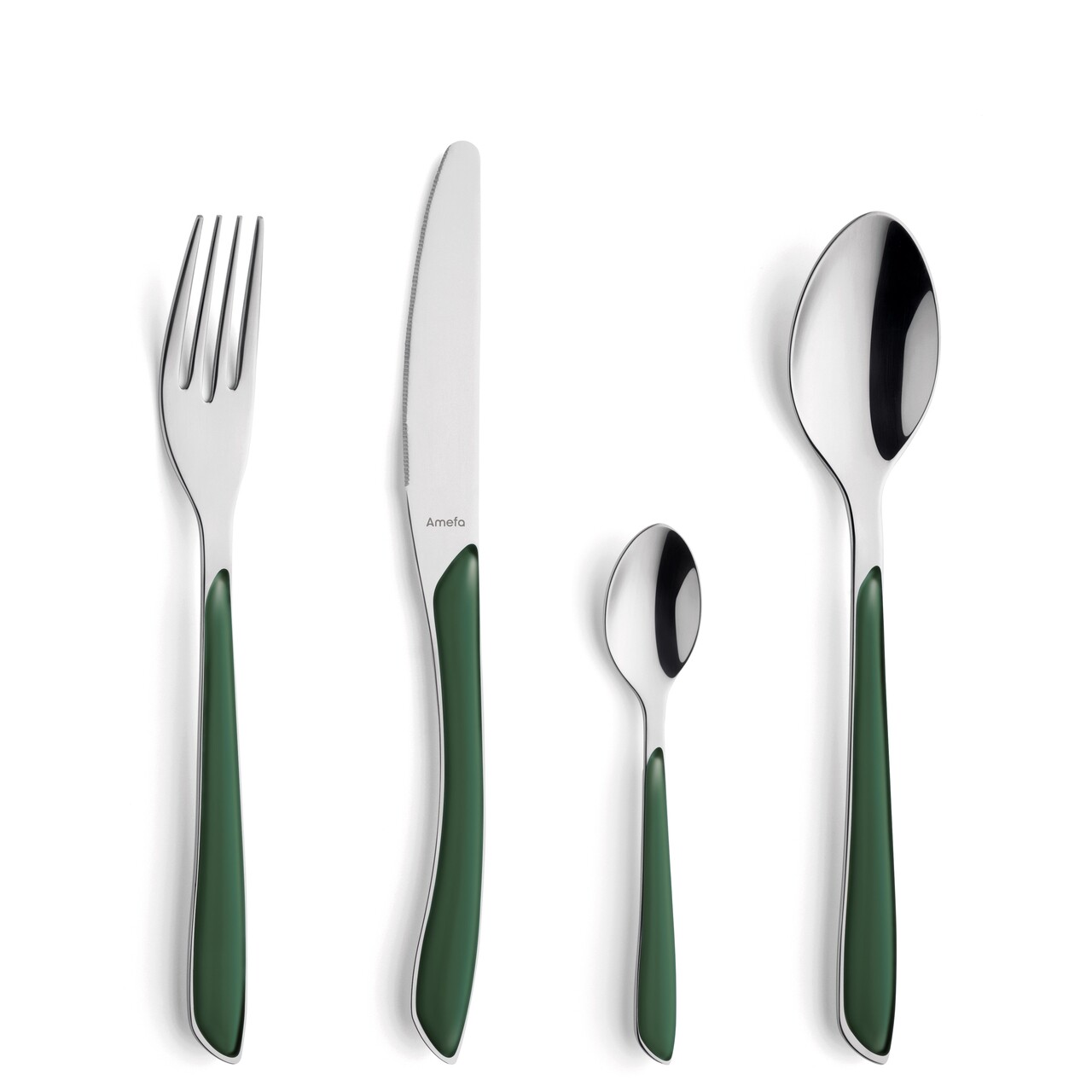 24 részes evőeszközkészlet, Amefa, Eclat, rozsdamentes acél, sötétzöld