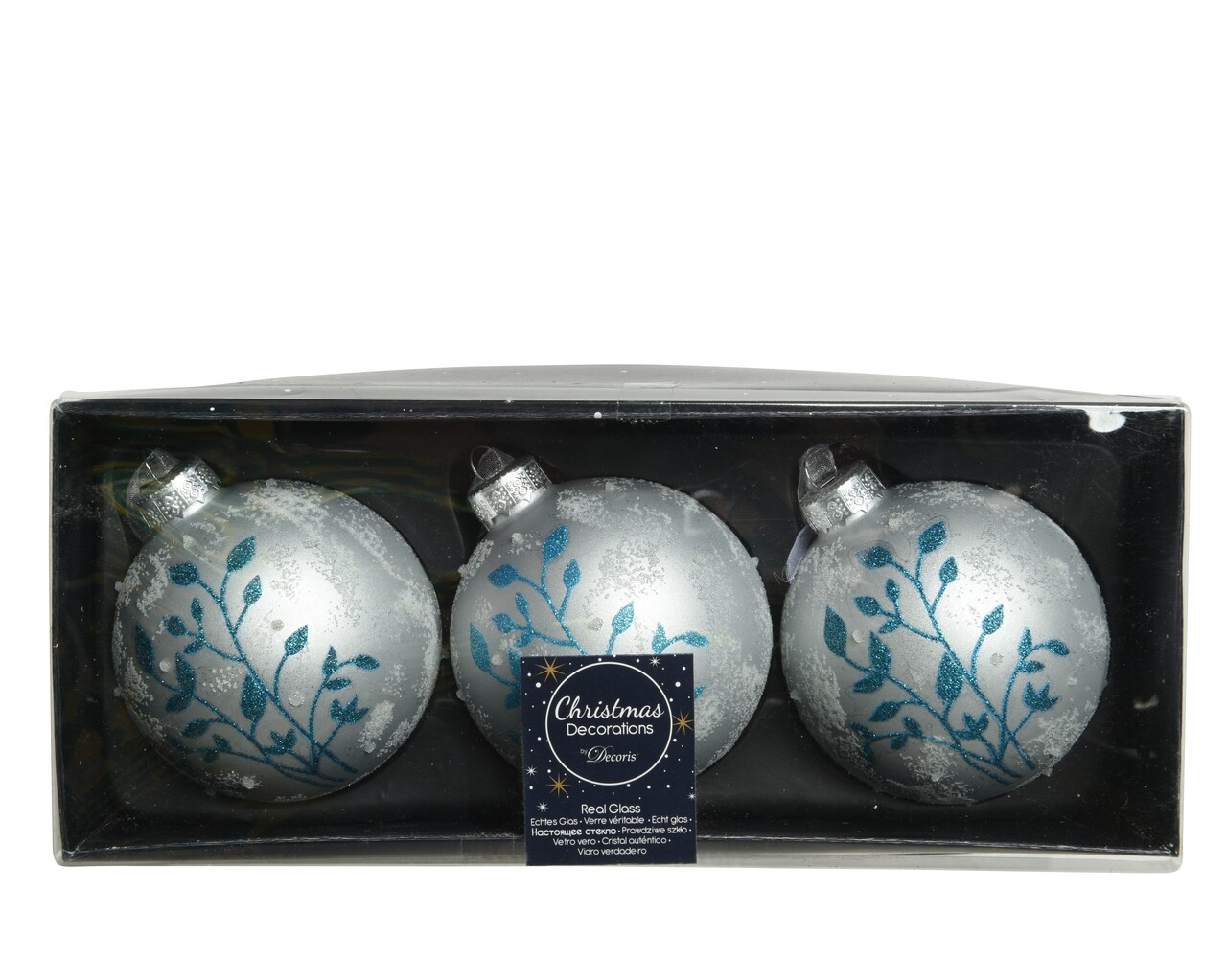 3 darabos Leaf Díszgömb szett, Decoris, Ø8 cm, üveg, kék