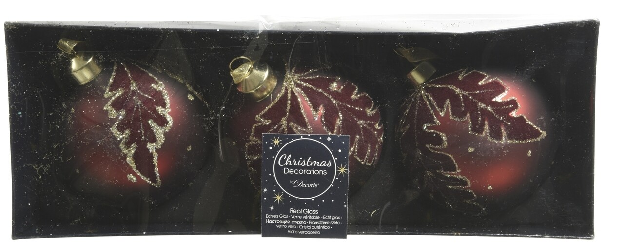 3 darabos Leaf Díszgömb szett, Decoris, Ø8 cm, üveg, piros