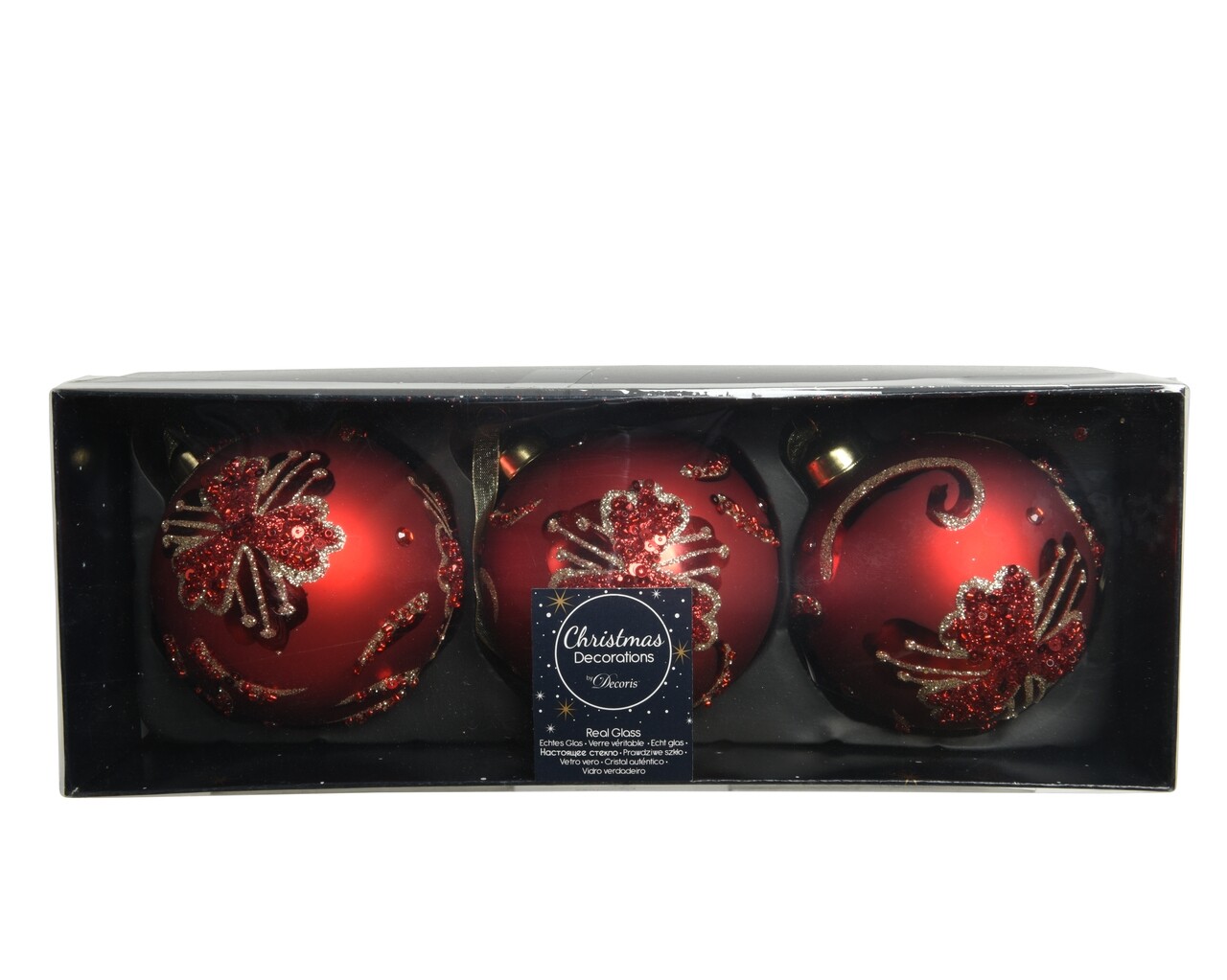 3 db Bauble diamond gömb, Decoris, Ø8 cm, üveg, piros
