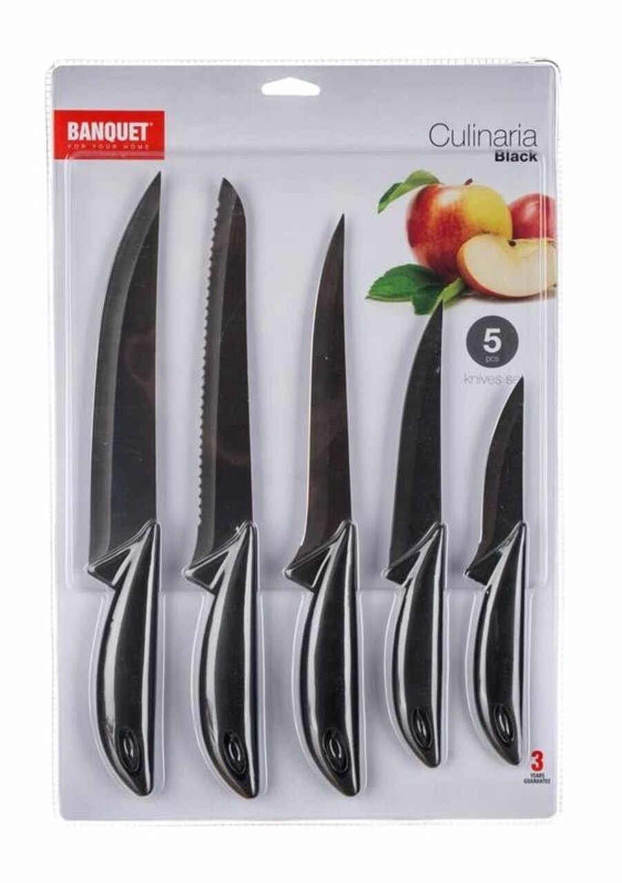 3 db Kés szett, rozsdamentes acél/műanyag, fekete