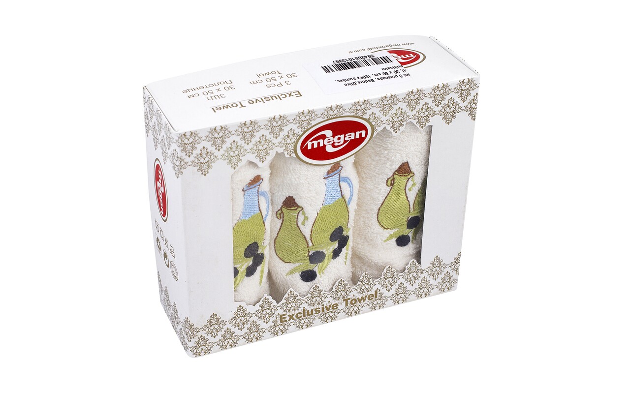 3 db Törölköző készlet, Bedora, olívaolaj, 30 x 50 cm, 100% pamut, többszínű