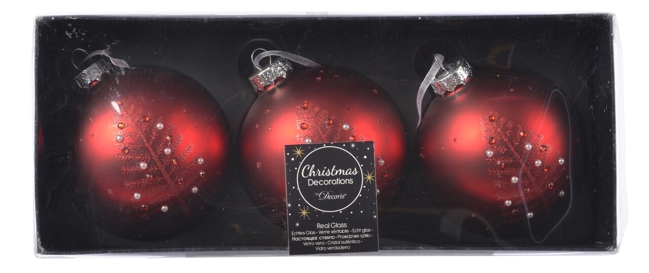 3 fából készült gyöngyszett Gömb , Decoris, Ø8 cm, üveg, piros