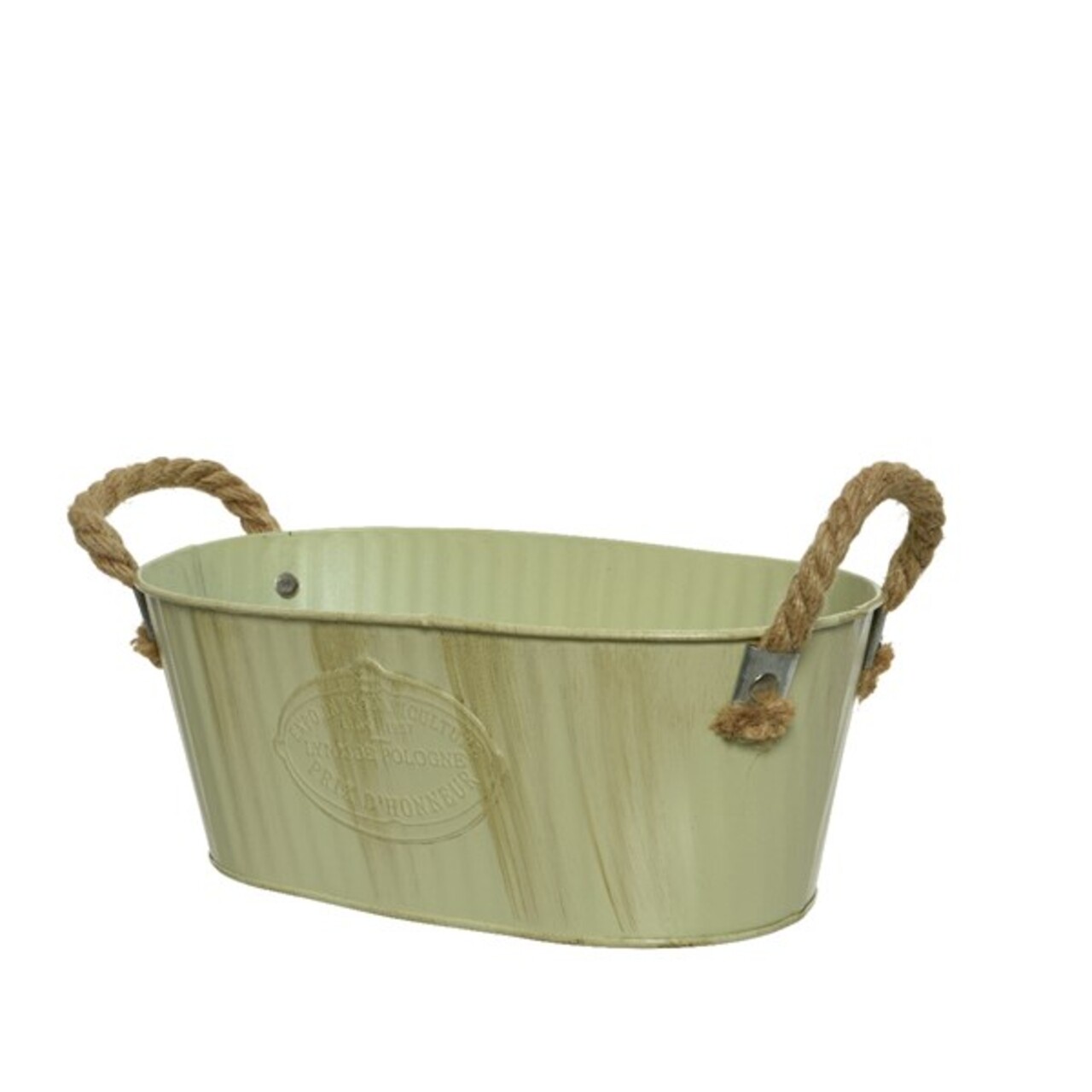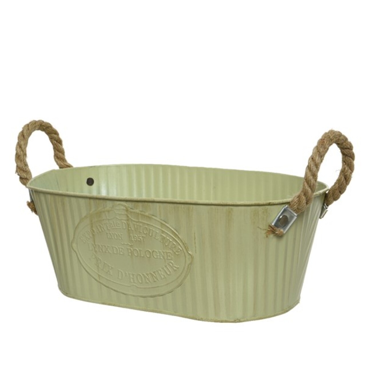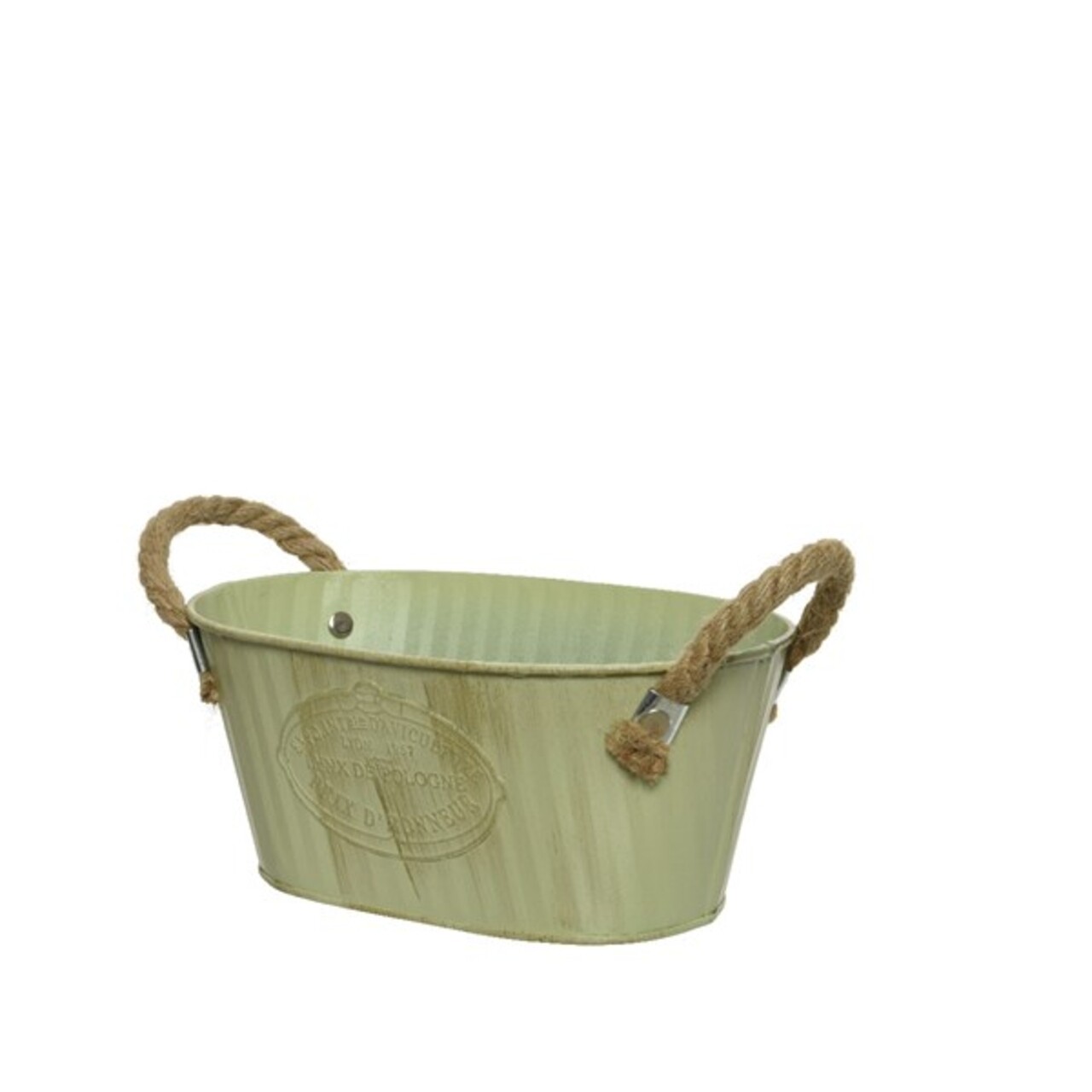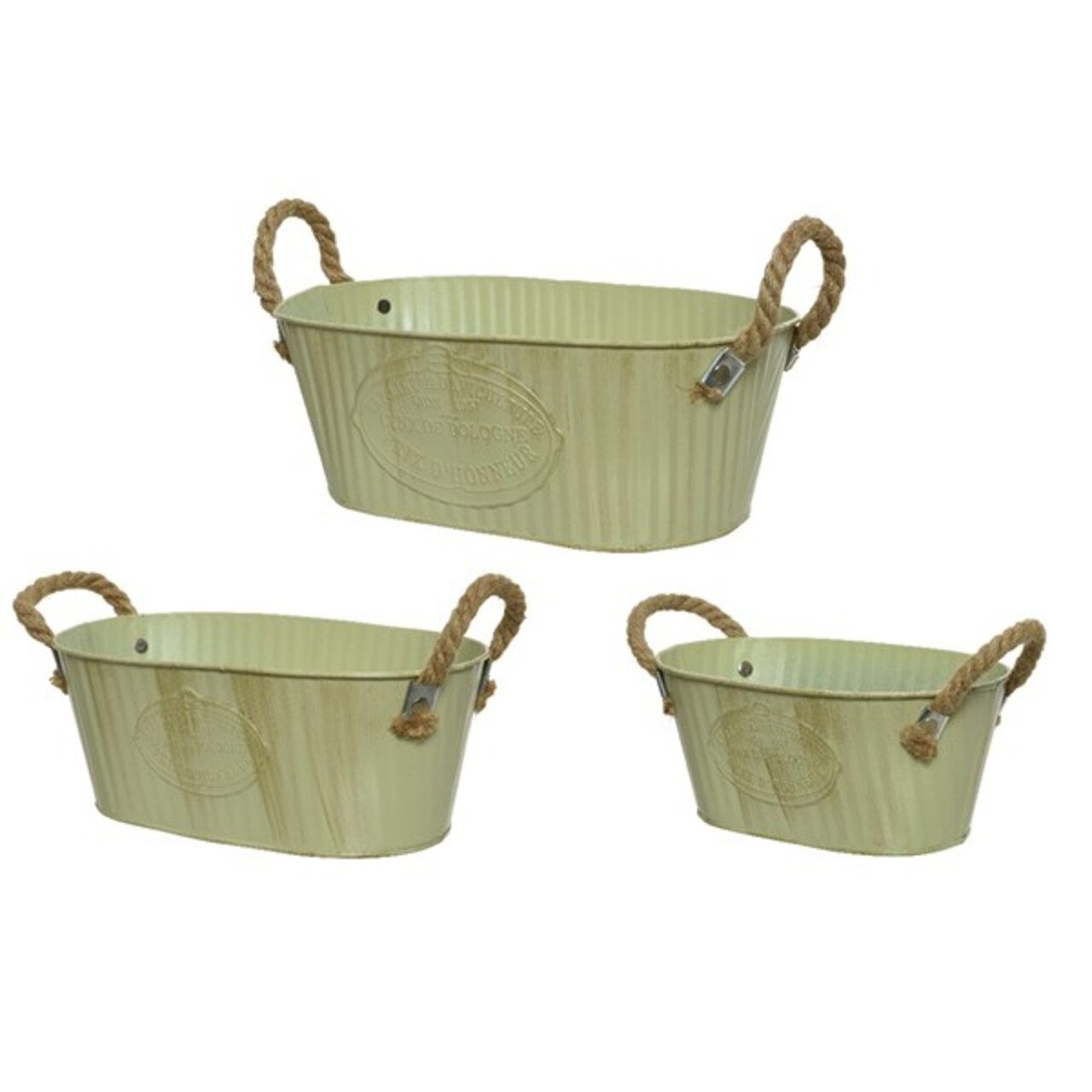 3 rusztikus ovális vödör készlet, dekor, cink, zöld