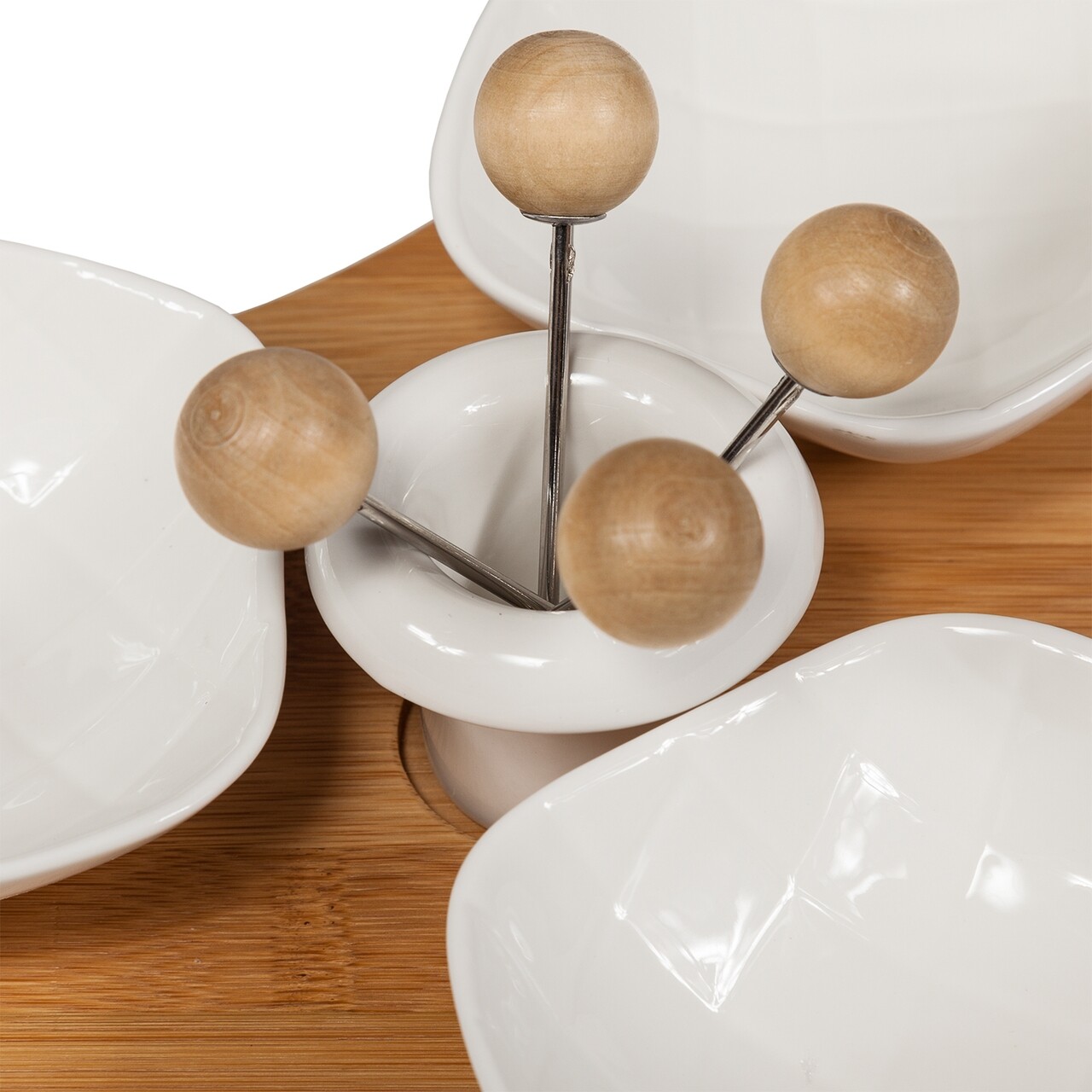 3 tál készlet előételekhez, fogpiszkálóhoz és Creaciones Meng alátéthez, porcelán/bambusz