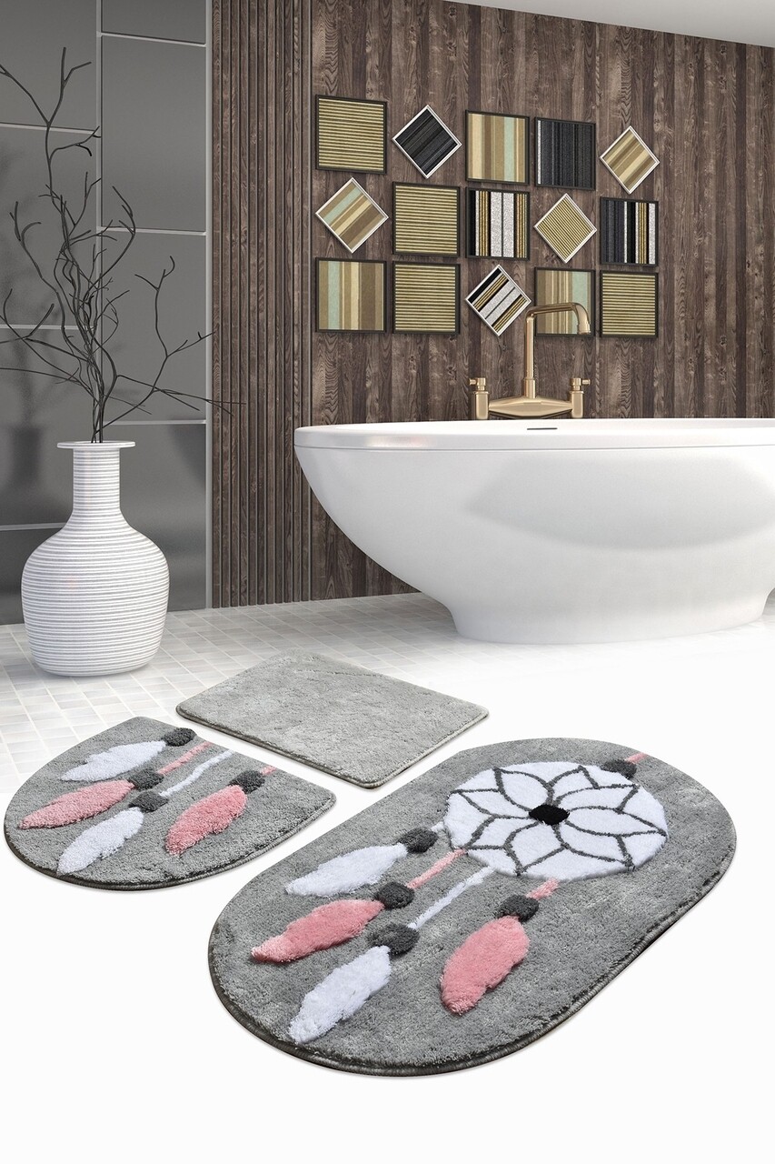 3db Ruya fürdőszőnyeg készlet, Chilai, 40x60 cm / 50x60 cm / 60x100 cm, szürke