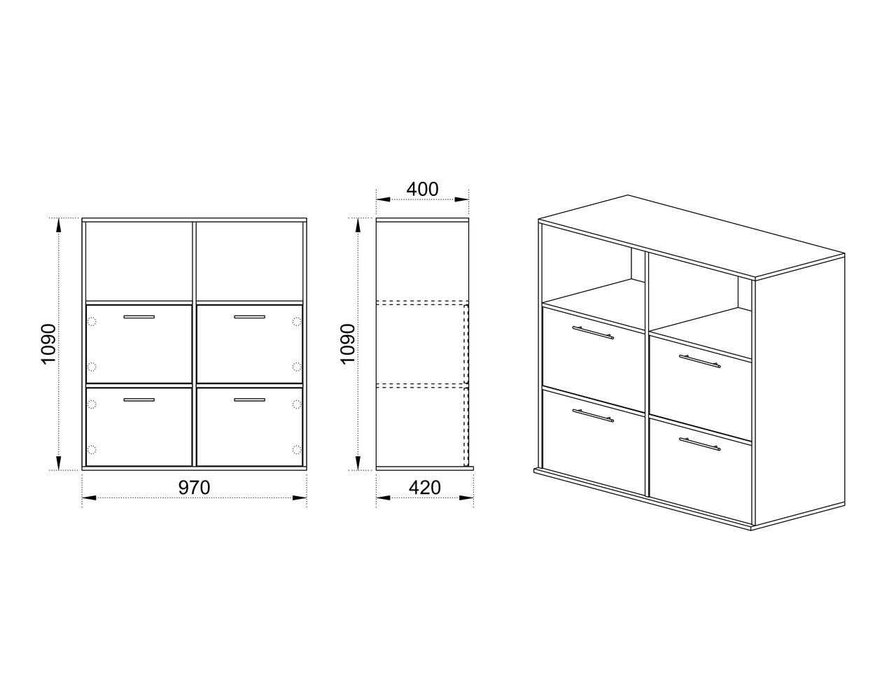 4 ajtós komód, Bedora, City 3022, 97 x 42,5 x 110 cm, PAL, sonoma / fehér