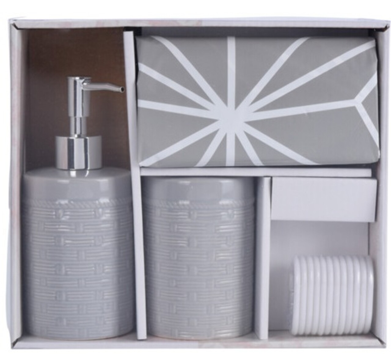 4 darabos Fürdőszobai szett Geometric, dolomit anyag, szürke