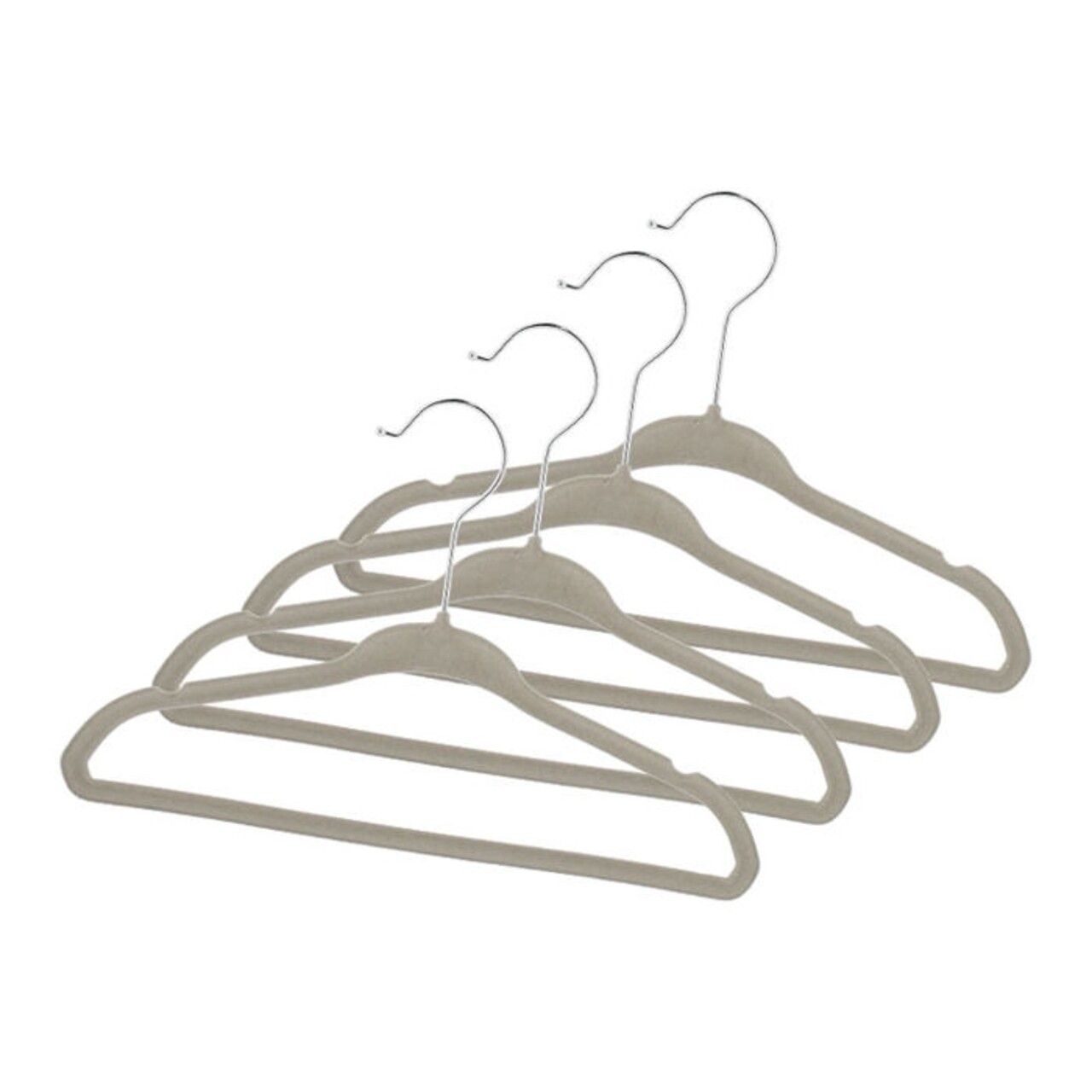 4 db bársony akasztó, tömörítő, 45x24x0,5 cm, műanyag, bézs