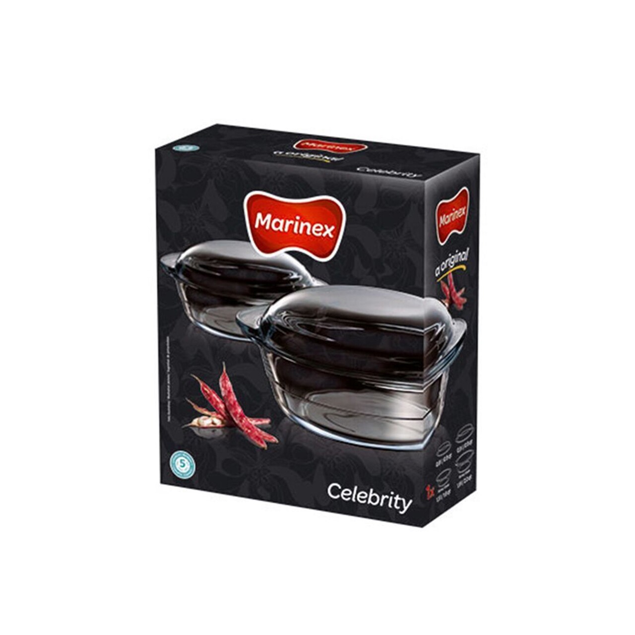 4 db kerek edényből álló készlet sütéshez Marinex, Celebrity, 1,9 + 0,9 L / 1,5 + 0,8 L, edzett üveg