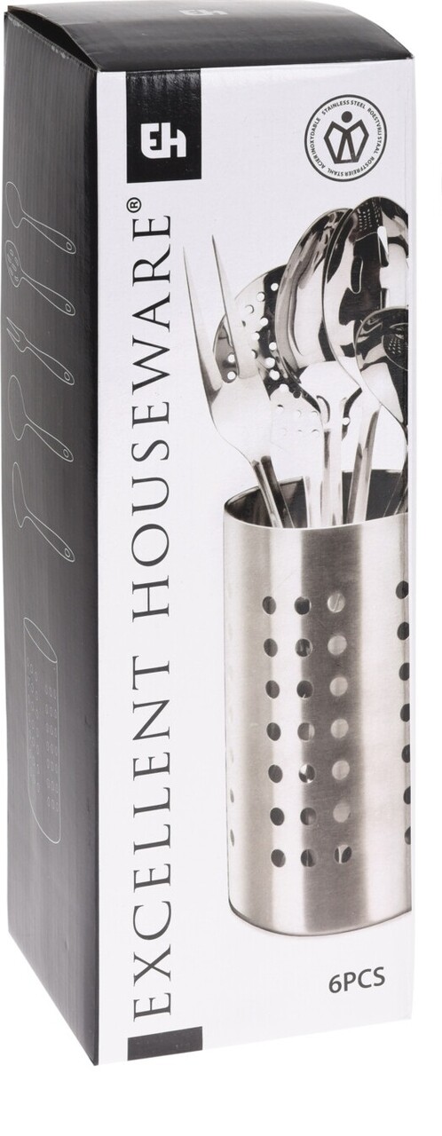 5 db-os konyhai eszköz készlet tartóval, 10,5x18 cm, rozsdamentes acél