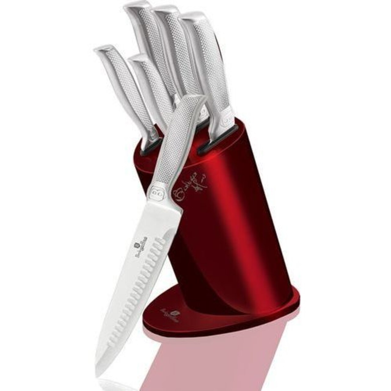 5db késes készlet + tartó, Berlinger, Kikoza Collection, rozsdamentes acél, bordó