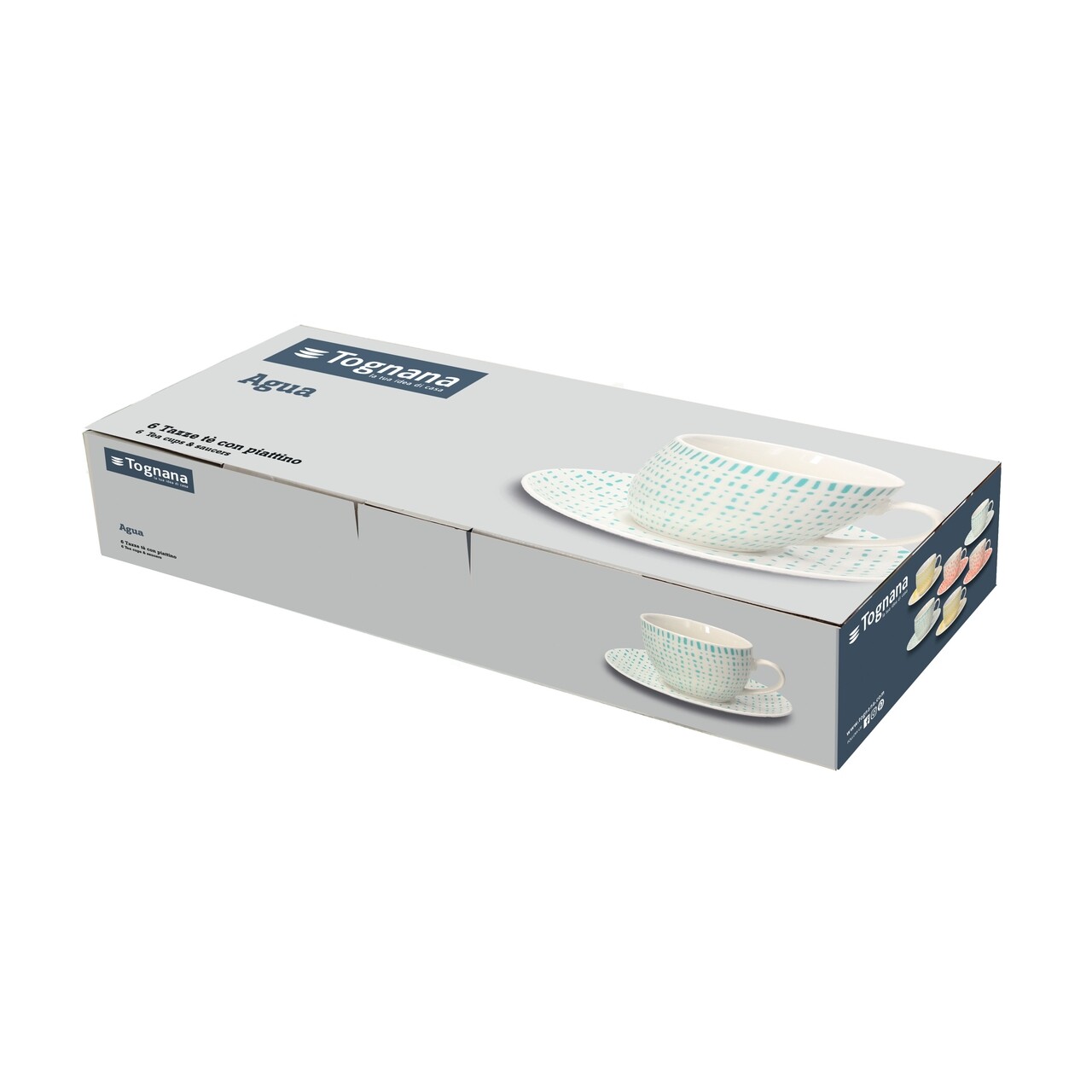 6 csésze készlet tányérral, Iris Agua, Tognana, 200 ml, porcelán, többszínű