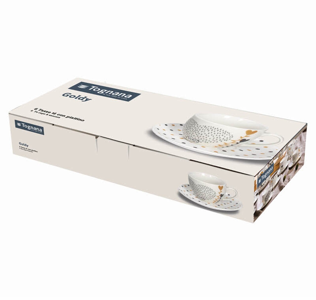 6 db csésze tányérral, Tognana, Iris Goldy, 200 ml, porcelán, sokszínű