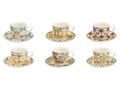 A hat csészéből és hat tányérból álló készlet különleges dizájnnal rendelkezik, a színkombináció pedig különleges dinamikát kínál az egész készletnek. Mindegyik darab más-más dizájnnal rendelkezik, így olyan látványos hangulatot kölcsönöz a szettnek, amely a vendégek minden tekintetét ellopja.