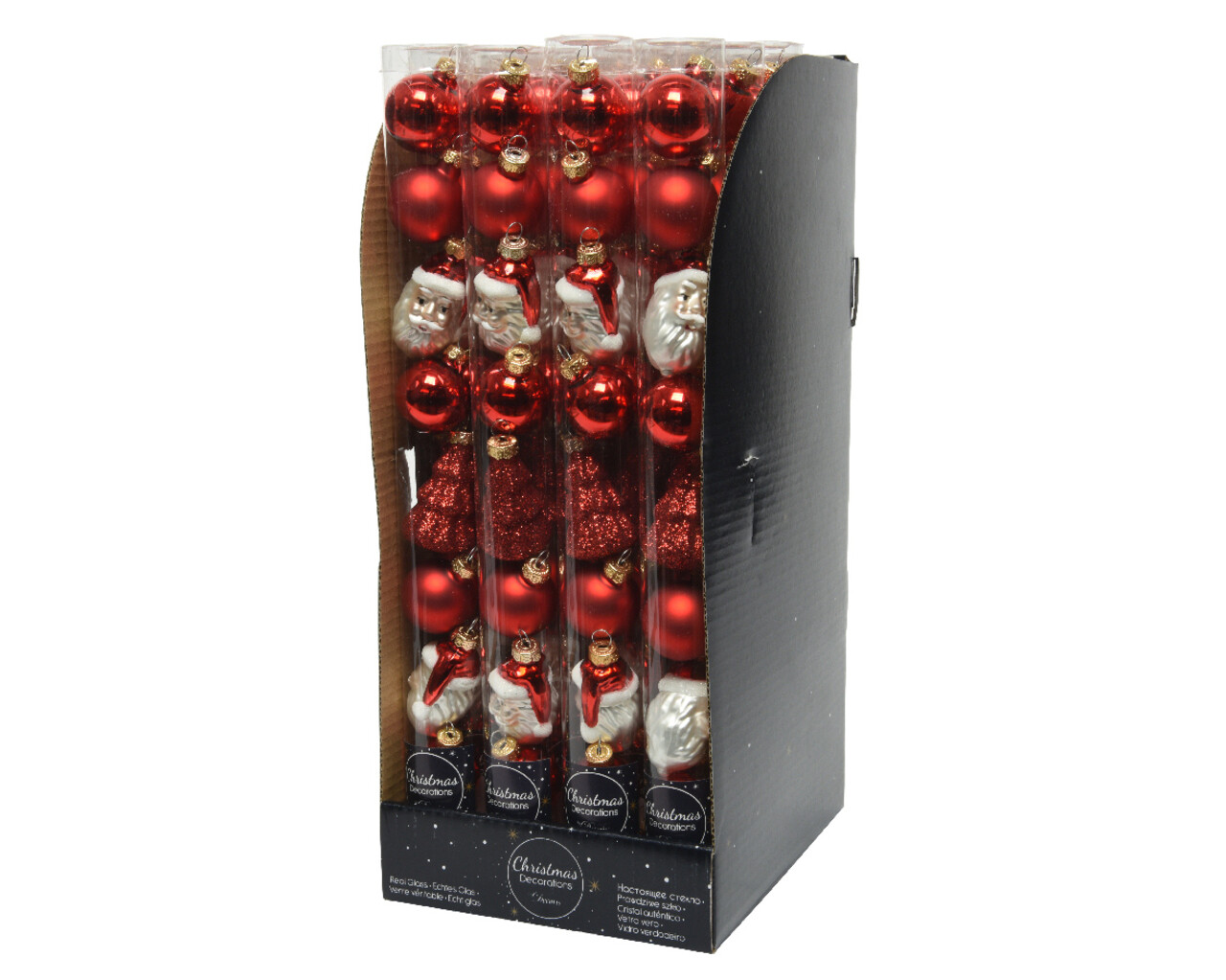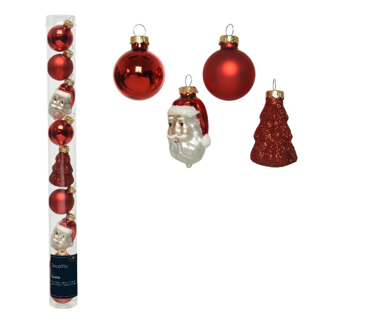 9 db gömbb készlet Mikulás, Decoris, üveg, piros