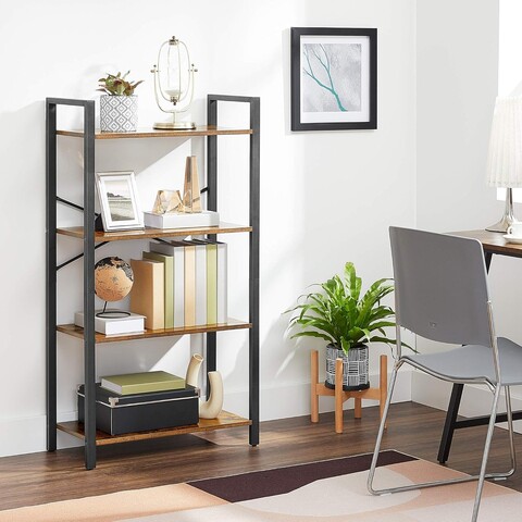 Könyvtár, Vasagle, 66 x 30 x 120 cm, vas / PAL, rusztikus barna