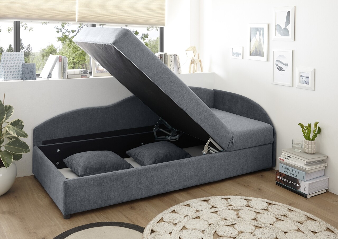 Ágy típusú kanapé, Laura Anthracit, 75 x 95 x 201 cm, PAL / fém / műanyag / poliészter
