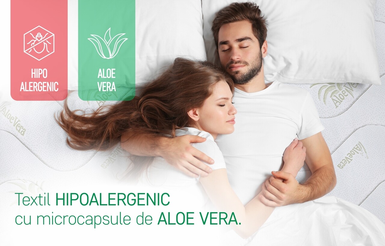 A finom, de ellenálló Aloe Vera anyagból készült matrac huzata bőséges szilikonizált szálakkal steppelt, amelyek az első komfortréteget alkotják, hogy enyhítsék a nyomáspontokat és ellazítsák az izmokat. A szellős szálszerkezetnek köszönhető kiváló szellőzés révén alvás közben a testhőmérsékletet is szabályozza.