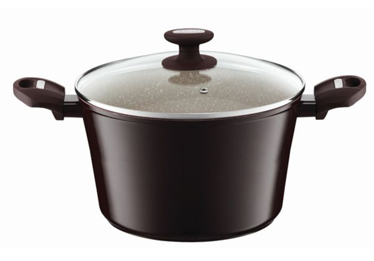 Kovácsolt alumínium lábas Qualum Basic Stone Edition bevonattal, amely a kő megjelenését utánozza. Nagy ellenállás a deformációval és karcolásokkal szemben, valamint edzett üvegfedél. Alkalmas minden típusú tűzhelyhez, beleértve az indukciós tűzhelyeket is.