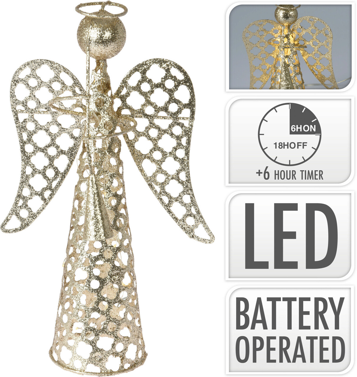 Angel Fénydekoráció, H30 cm, fém, aranyszín