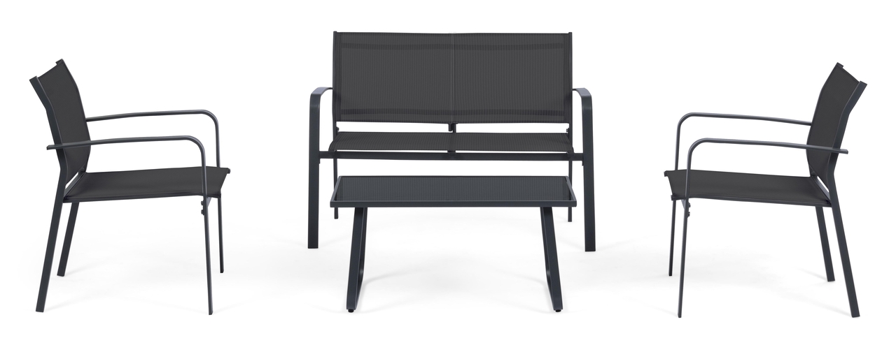 Arent 4 darabos Kerti/terasz bútor szett, Bizzotto, acél/textilén 2x1, sötétszürke/szürke