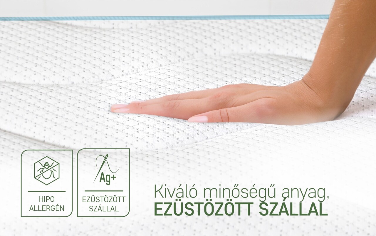 Az ezüstionok természetes antimikrobiális tulajdonságai, amelyek jól ismertek a jelenlegi orvostudományban, csökkentik a mikrobák és baktériumok fejlődését a burkolat felületén, és tiszta, allergiaellenes felületet biztosítanak az egészséges alváshoz mikroorganizmusok nélkül.