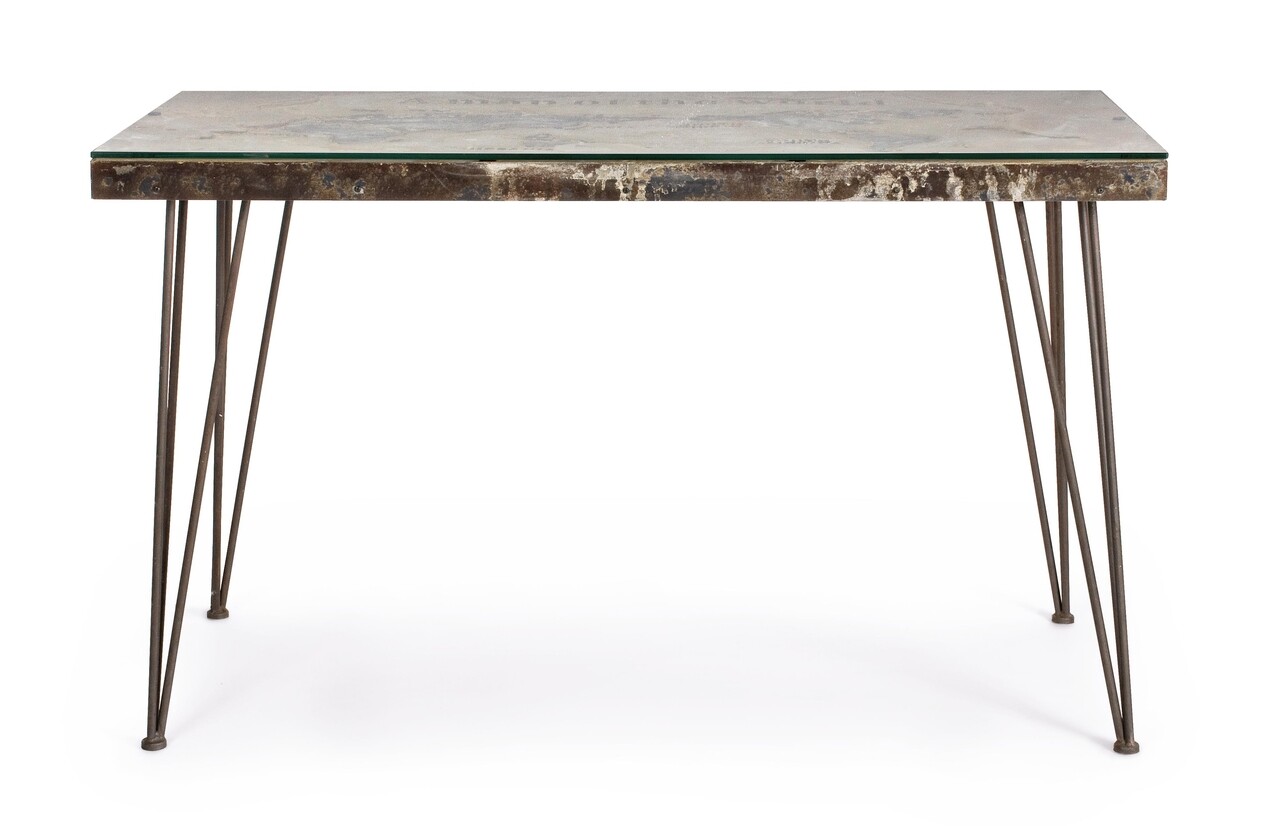 Atlantide Íróasztal, Bizzotto, 130 x 65 x 75 cm, acél/üveg