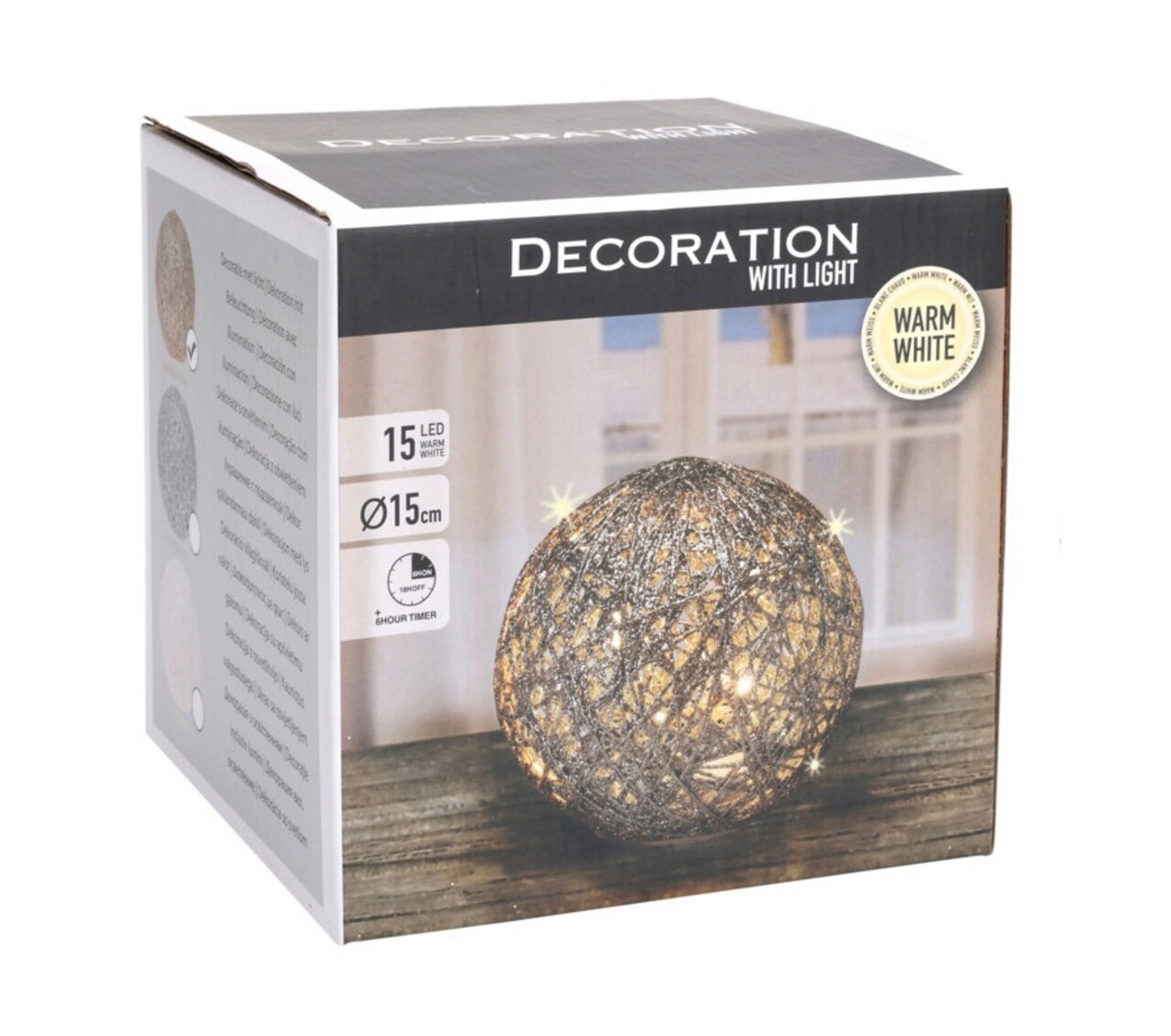 Ball Fénydekoráció, 15x15x14 cm, raffia, aranyszín