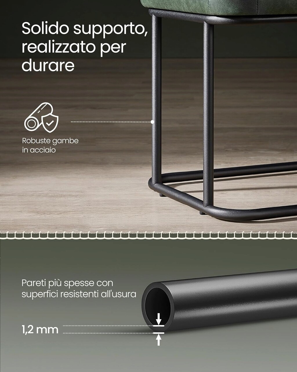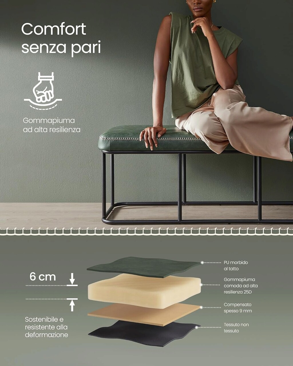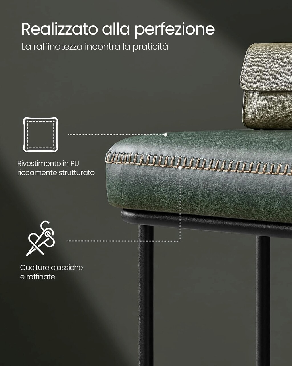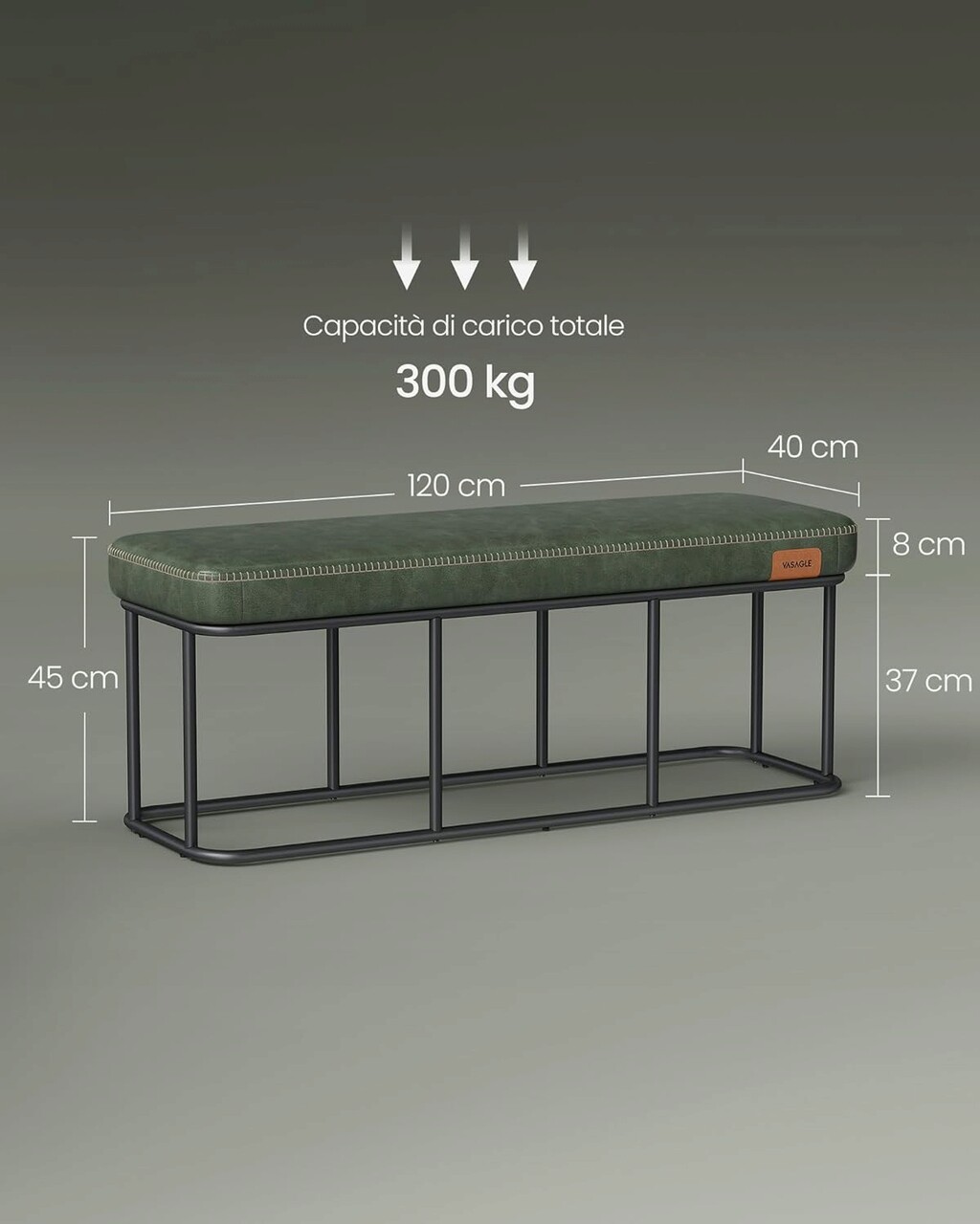 Bancheta Vasagle Ekho, 120 x 40 x 45 cm, max 300 kg, piele ecologica/otel, verde padure