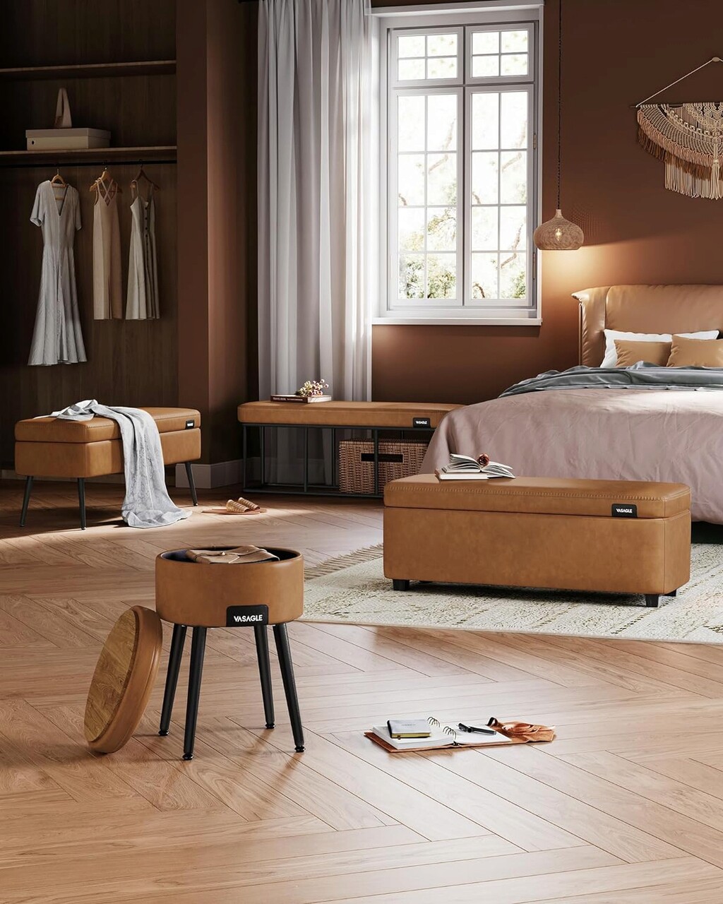 Asamblare fara efort, ingrijire usoara Nu numai ca banca pentru dormitor este usor de asamblat, dar este, de asemenea, confectionata din piele sintetica rezistenta la uzura, care este usor de ingrijit. Urmati pur si simplu instructiunile clare pentru a atasa picioarele si sunteti gata.