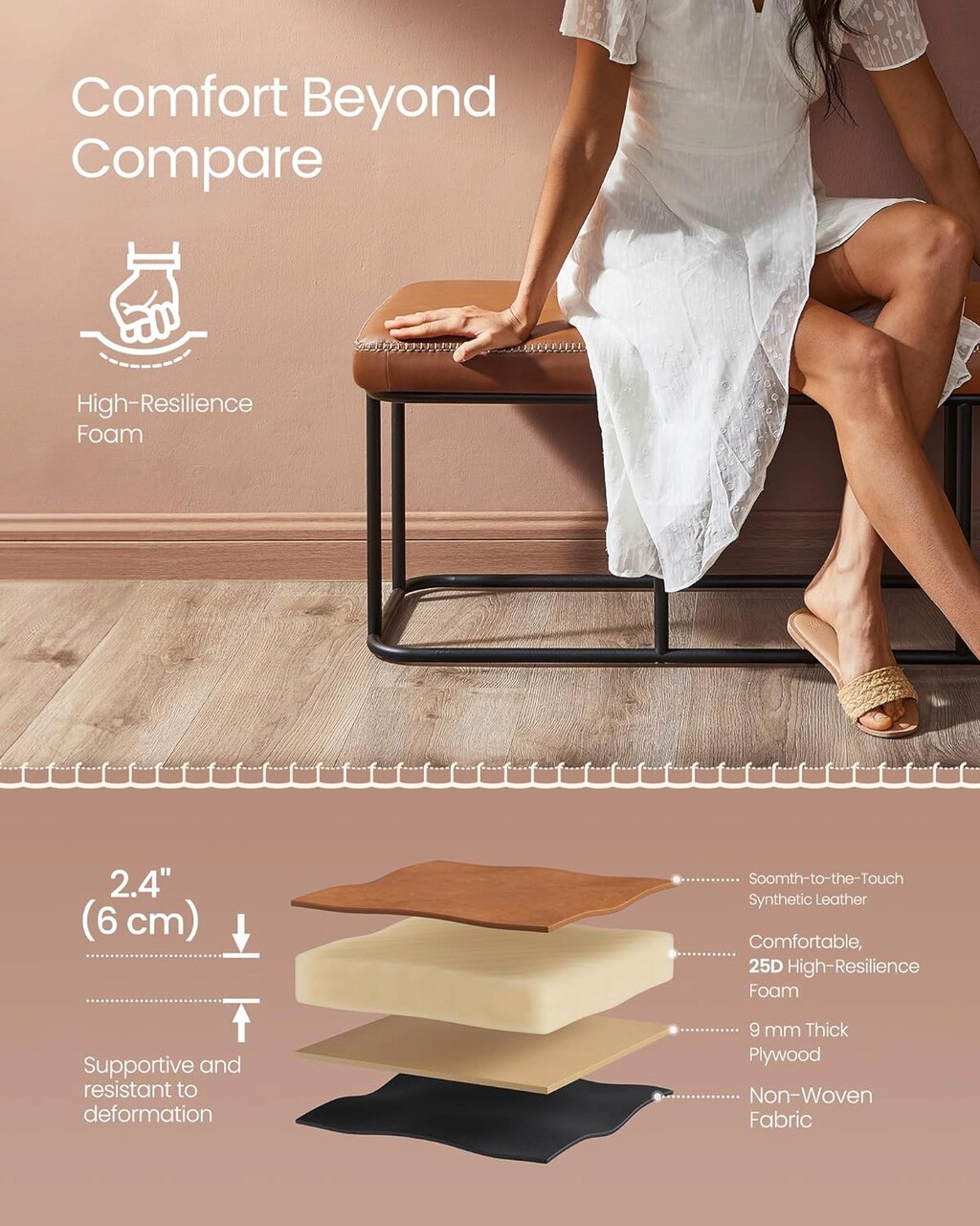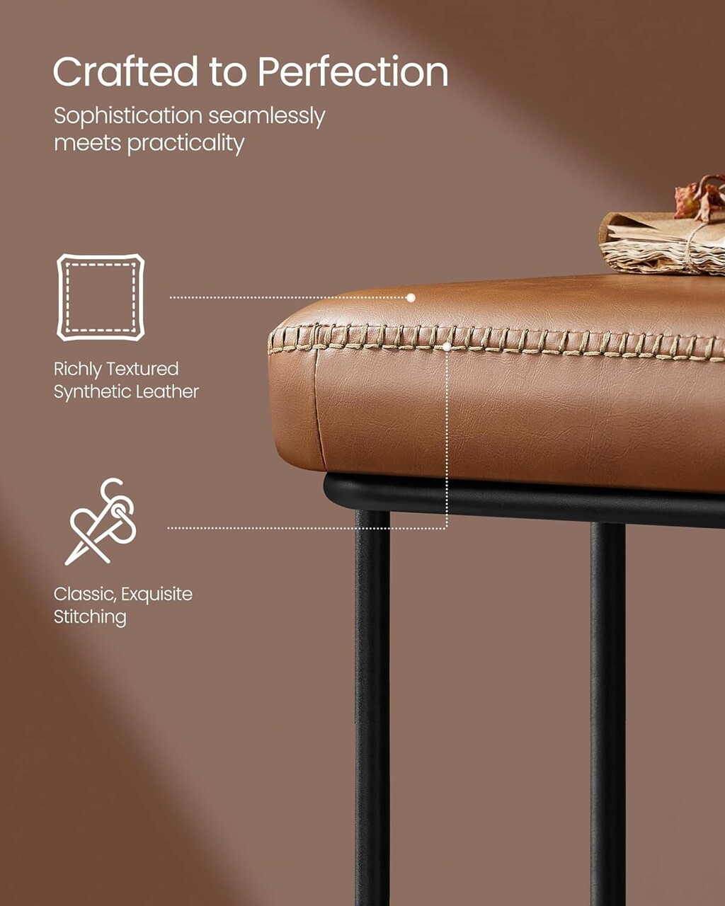 Bancheta Vasagle Ekho, 120 x 40 x 45 cm, max 300 kg, piele ecologica/otel, caramel