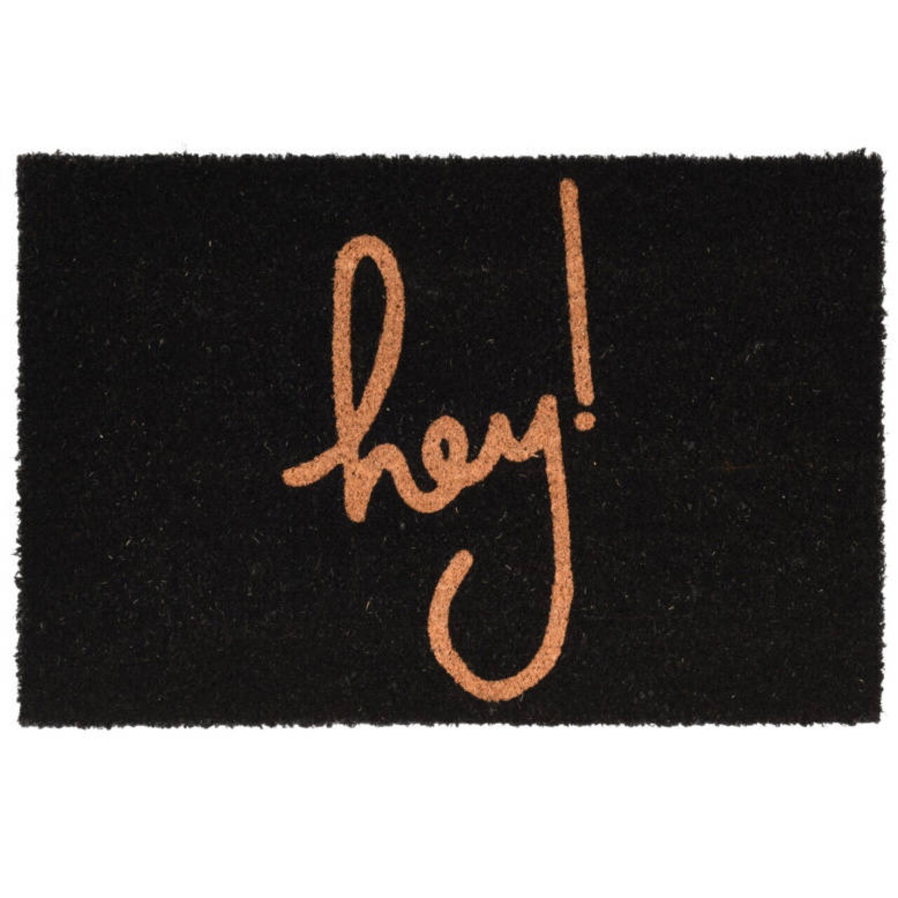 Bejárati szőnyeg Hey, 39x59 cm, kókuszrost, barna/fekete