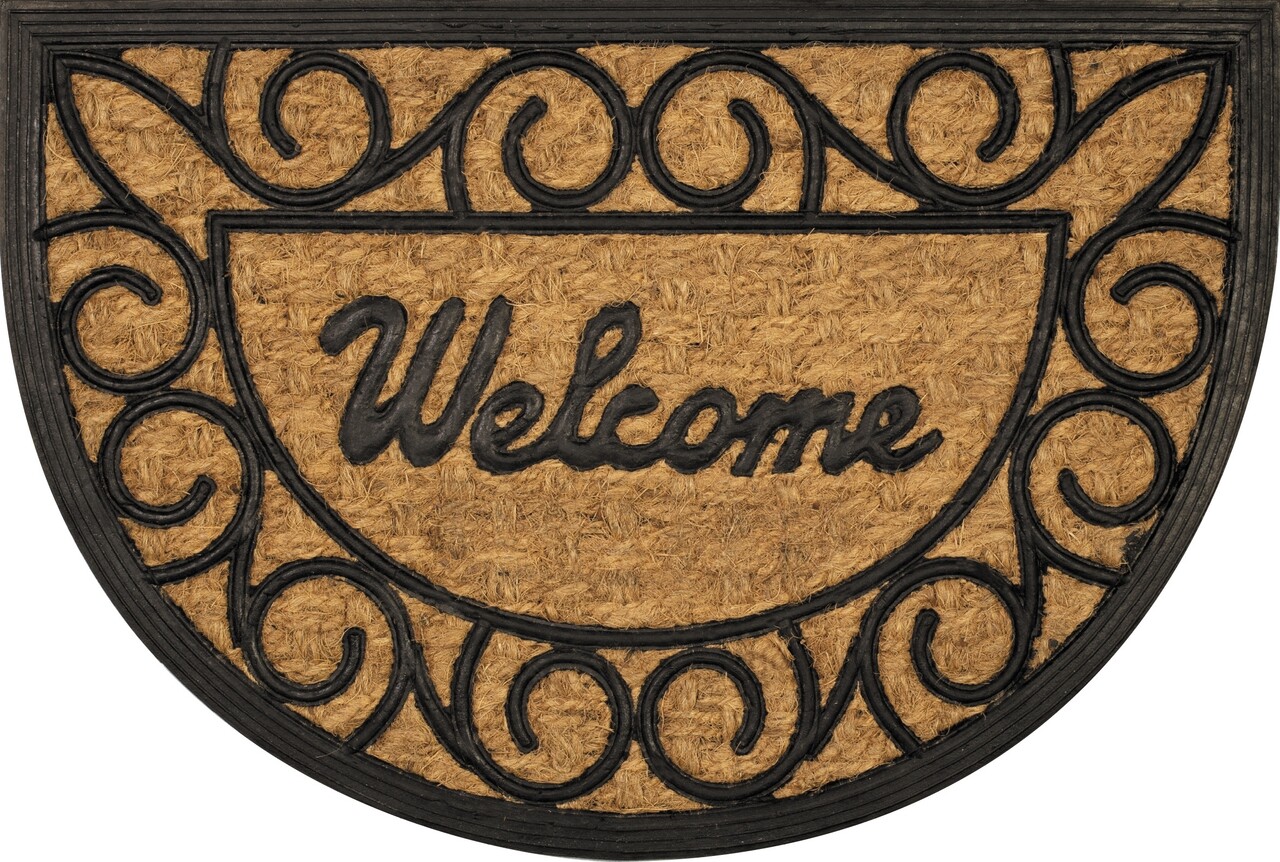 Bejárati szőnyegek, Olivo Tappeti, Promo Mezzaluna, Welcome 01, 40x60 cm, gumi / kókuszrost, barna / fekete