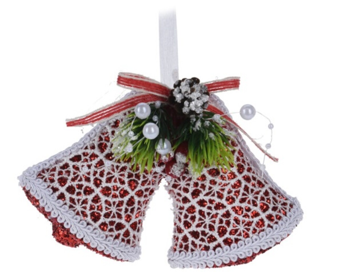 Bells w canvas pattern Dísz, 14.5x3.5x11 cm, poliészter, piros/fehér