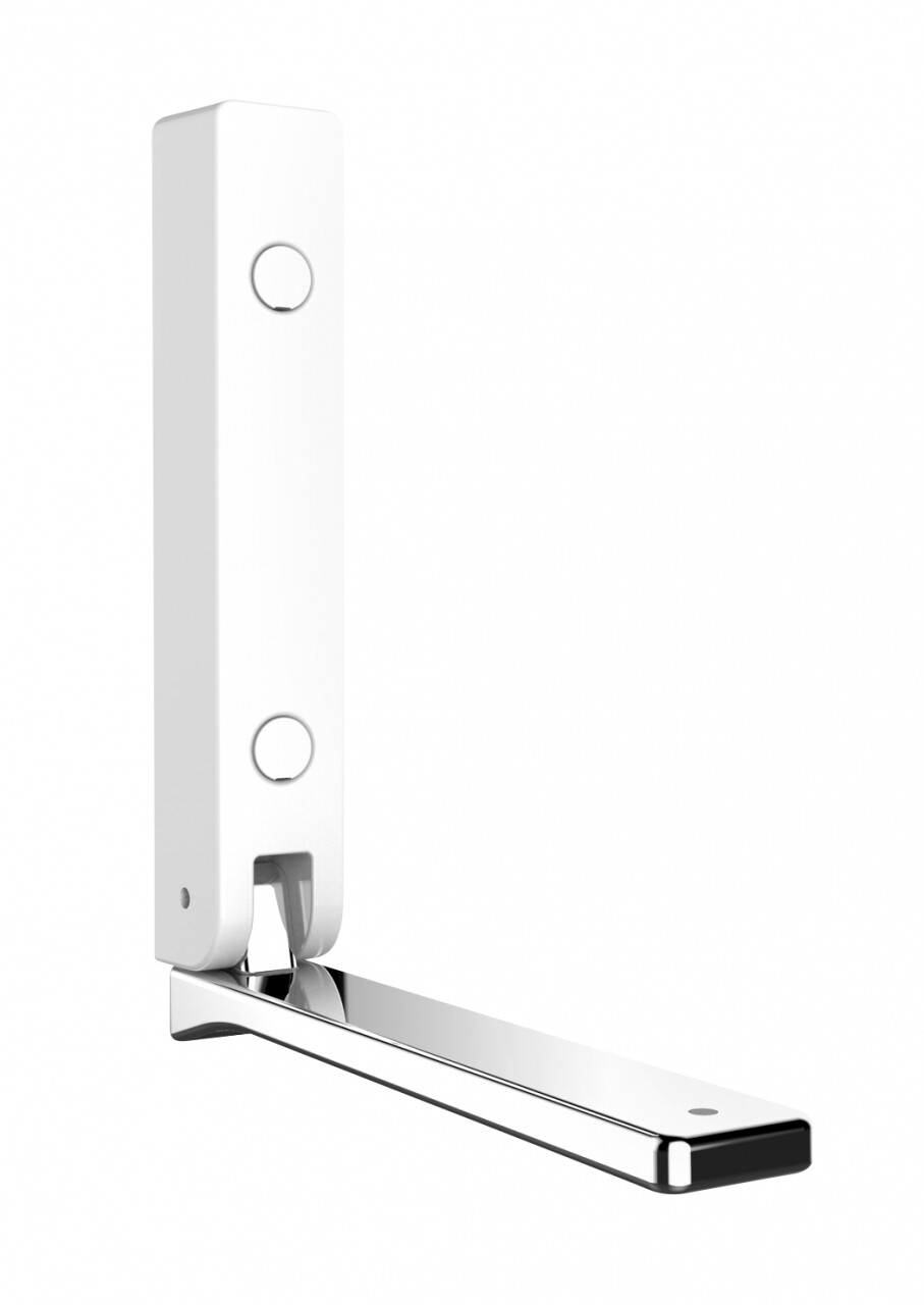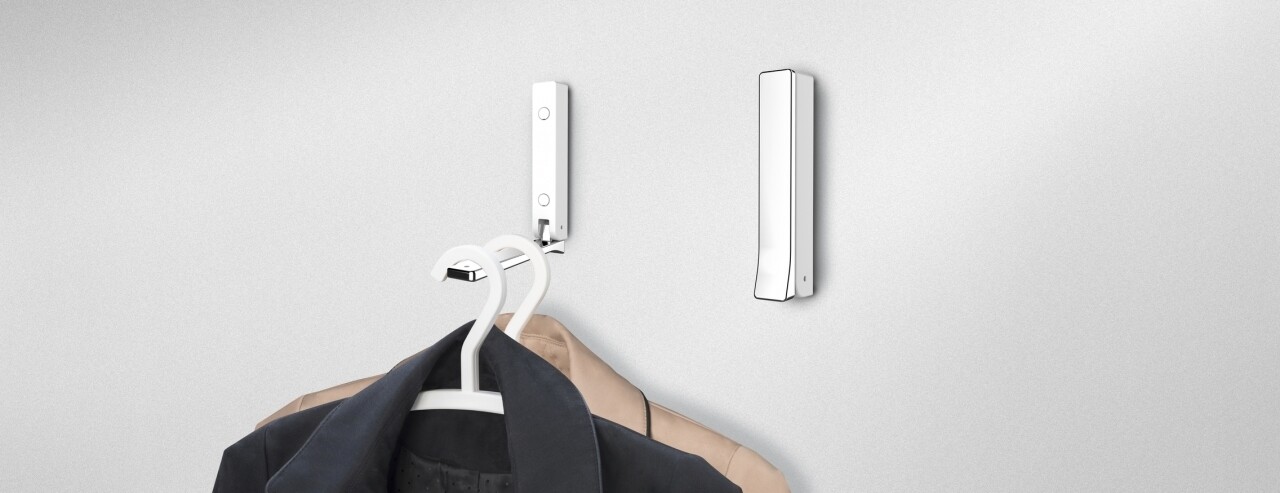 Az akasztón van egy akasztó, amely akkor húzódik meg, amikor nem használják, hogy ne foglaljon sok helyet. Könnyen megfogható, tartós, krómozott fém, műanyag és mágnes kombinációjából készül.