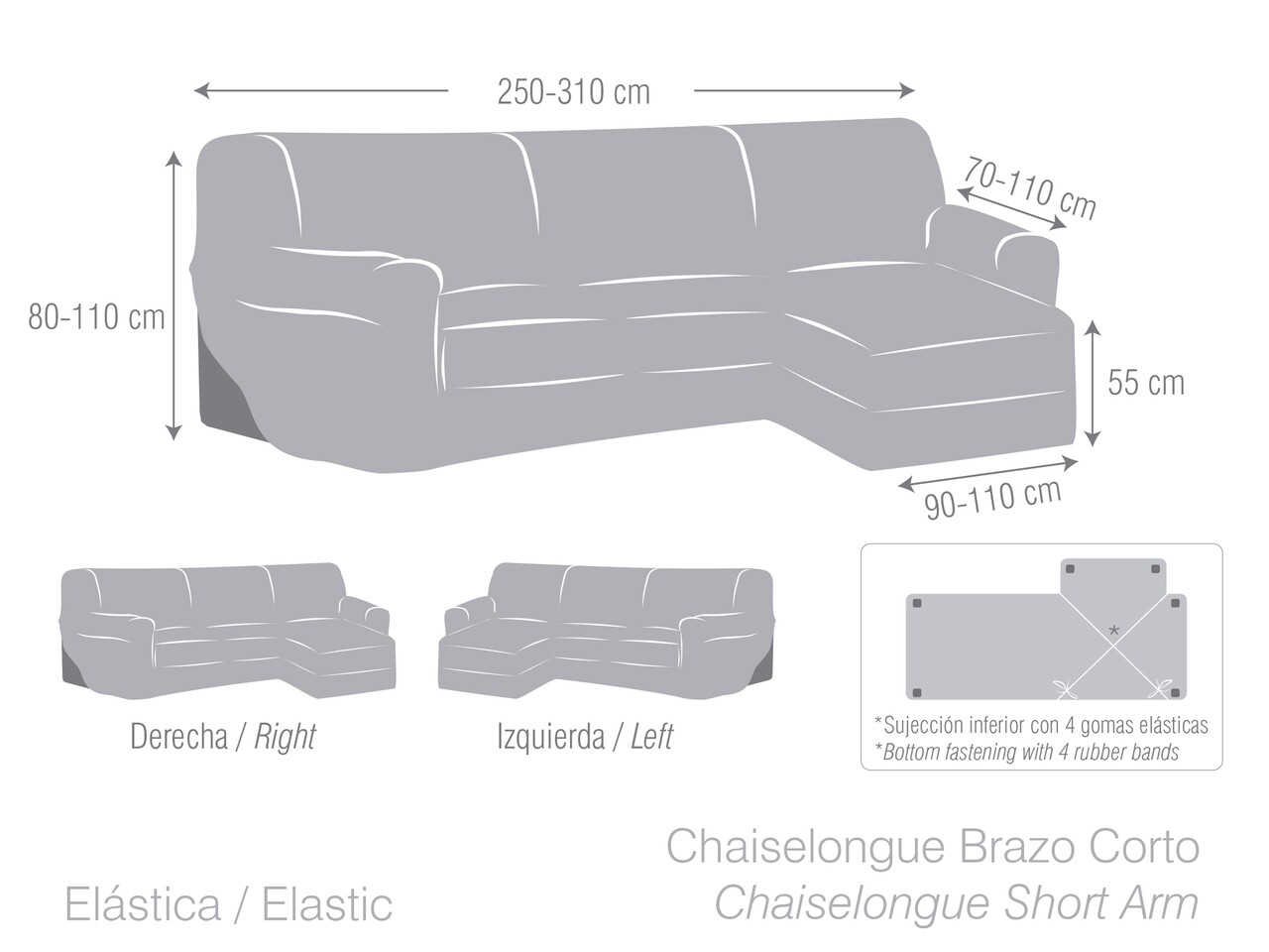 Terméktípus: bi-sztreccs rugalmas huzat a bal sarokhoz, rövid karral, 250-310 cm-ig kihúzható