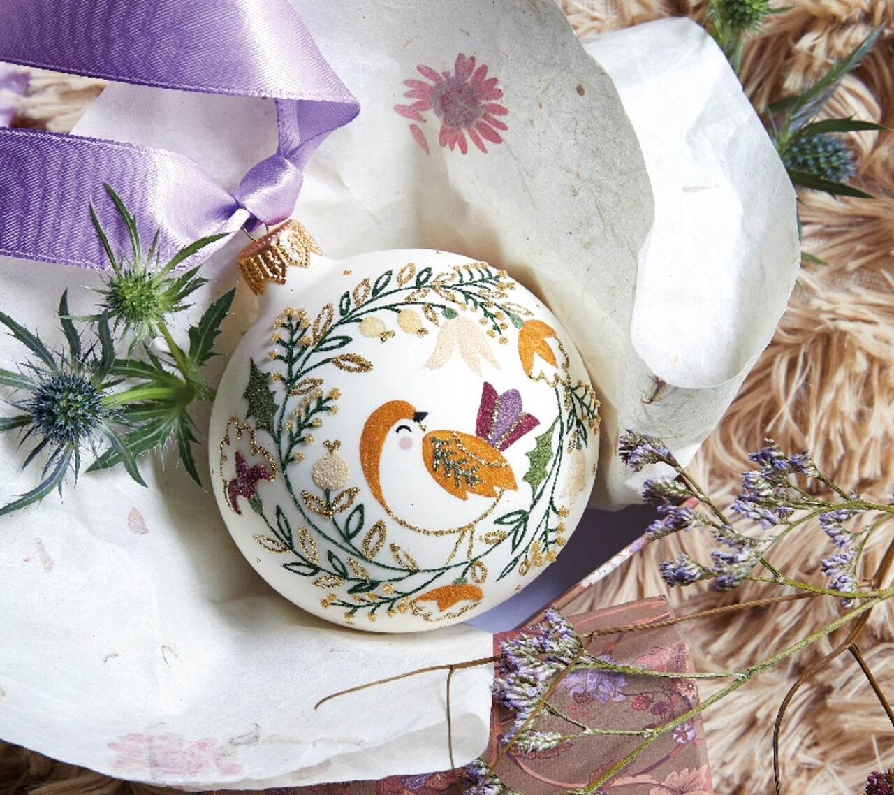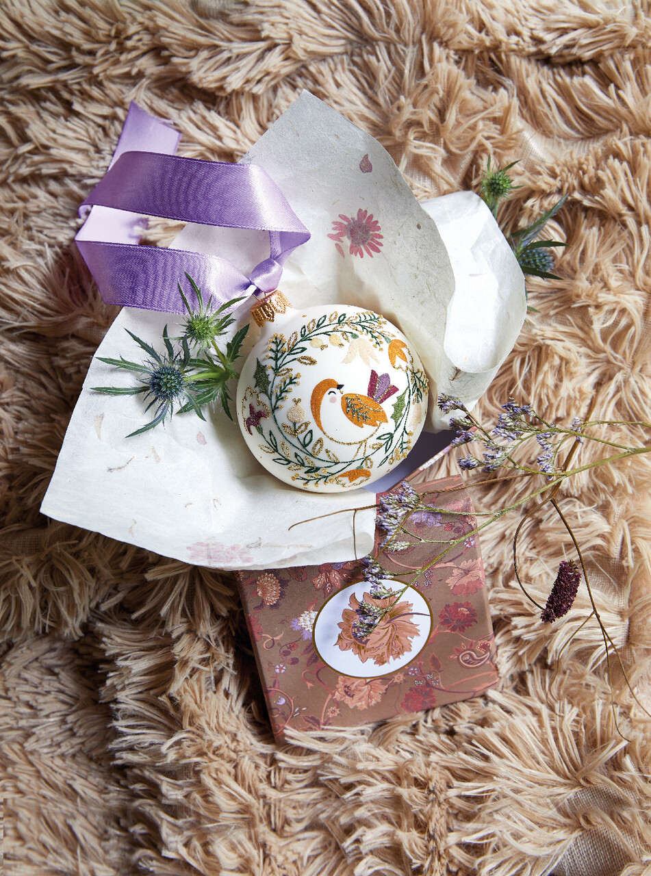 Bird in wreath Díszgömb, Decoris, Ø8 cm, üveg, színes