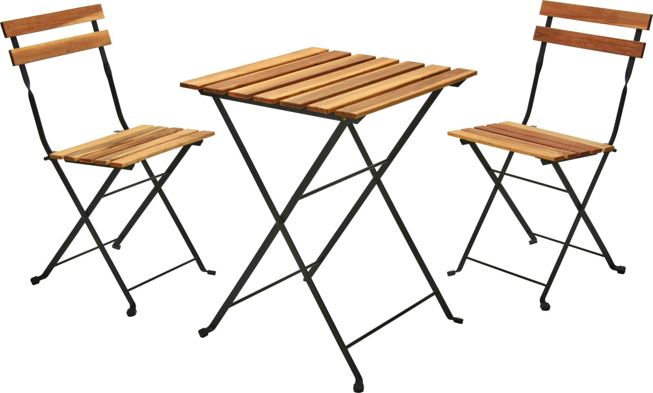 Bistro Kerti bútor szett, 3 darabos, akácfa/acél, barna/fekete