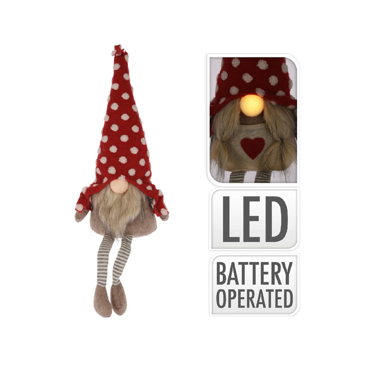 Boy Gnome Fénydekoráció, 20x13x50 cm, plüss, piros/bézs