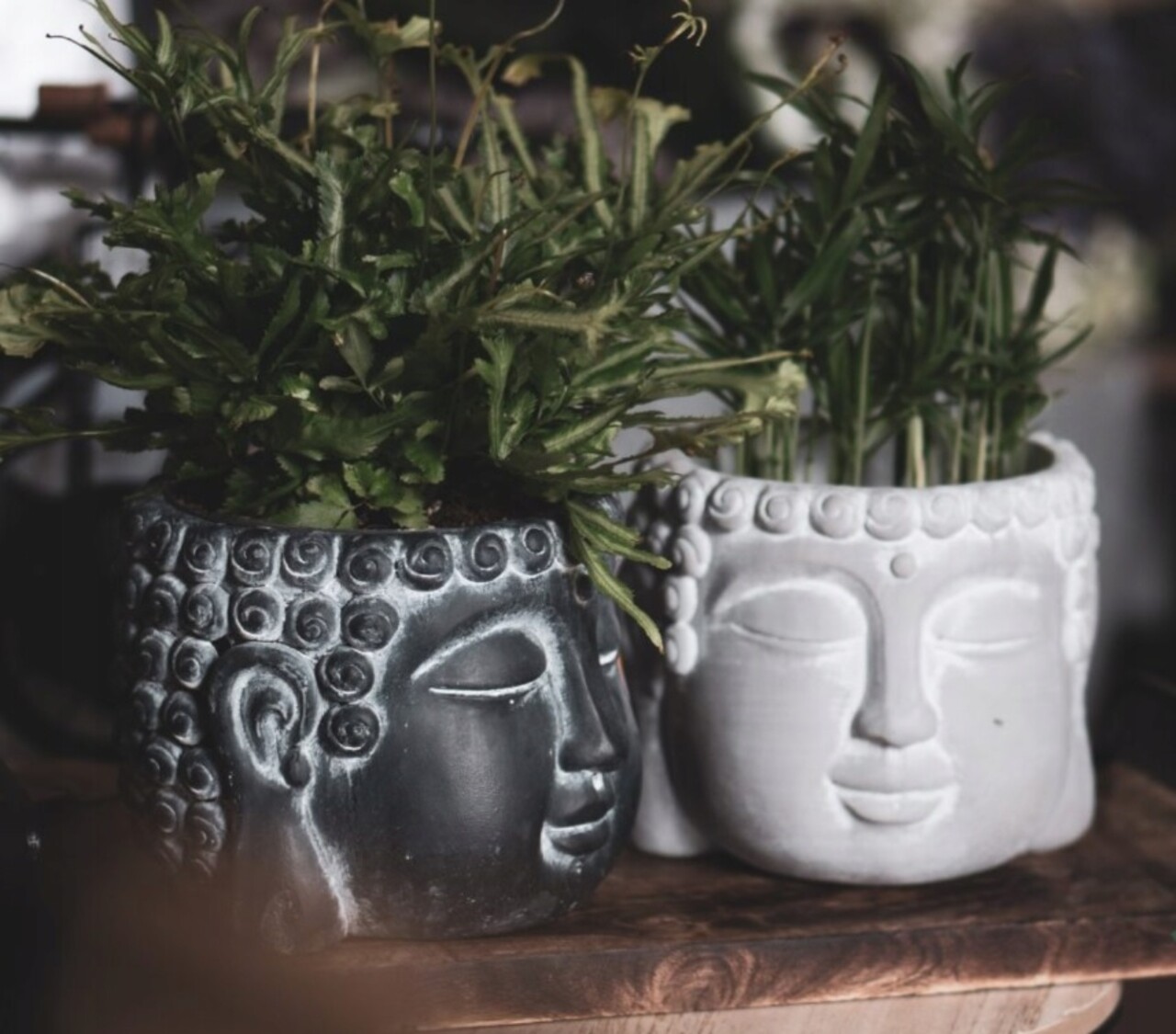 Buddha Virágtartó, 16x16x12,5 cm, cement, fekete