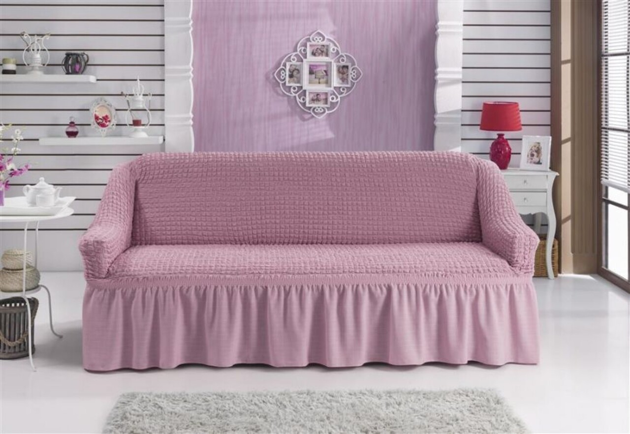 A rózsaszínű Bulsan 3 személyes kanapé huzat színfoltja a szobának, de ami a legfontosabb, véd a szennyeződésektől, a nedvességtől és a kopástól.